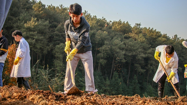 图 学生认真整地中