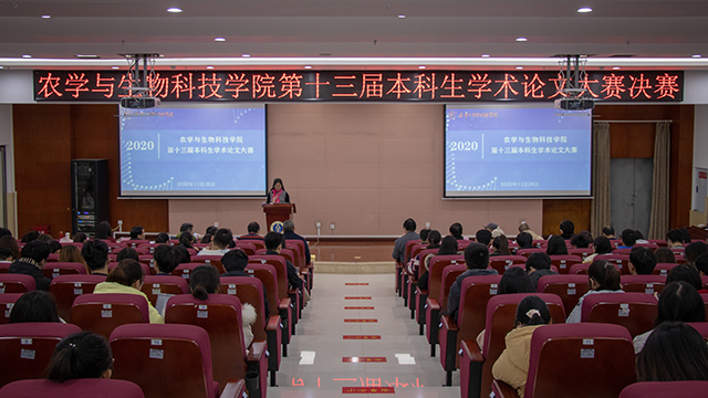 第十三届本科生学术论文大赛决赛于隆平楼204顺利举行。学院党委书记阳义健出席大赛,学院党委副书记郑莉佳主持大赛及颁奖典礼,十一位专家教授组成强大阵容的评审团和各班学生代表组成的大众评审对10项参赛作品进行评审,各参赛作品指导老师、各年级辅导员、2018、2019级隆平拓展班的全体同学以及各班学生代表到场观摩比赛。