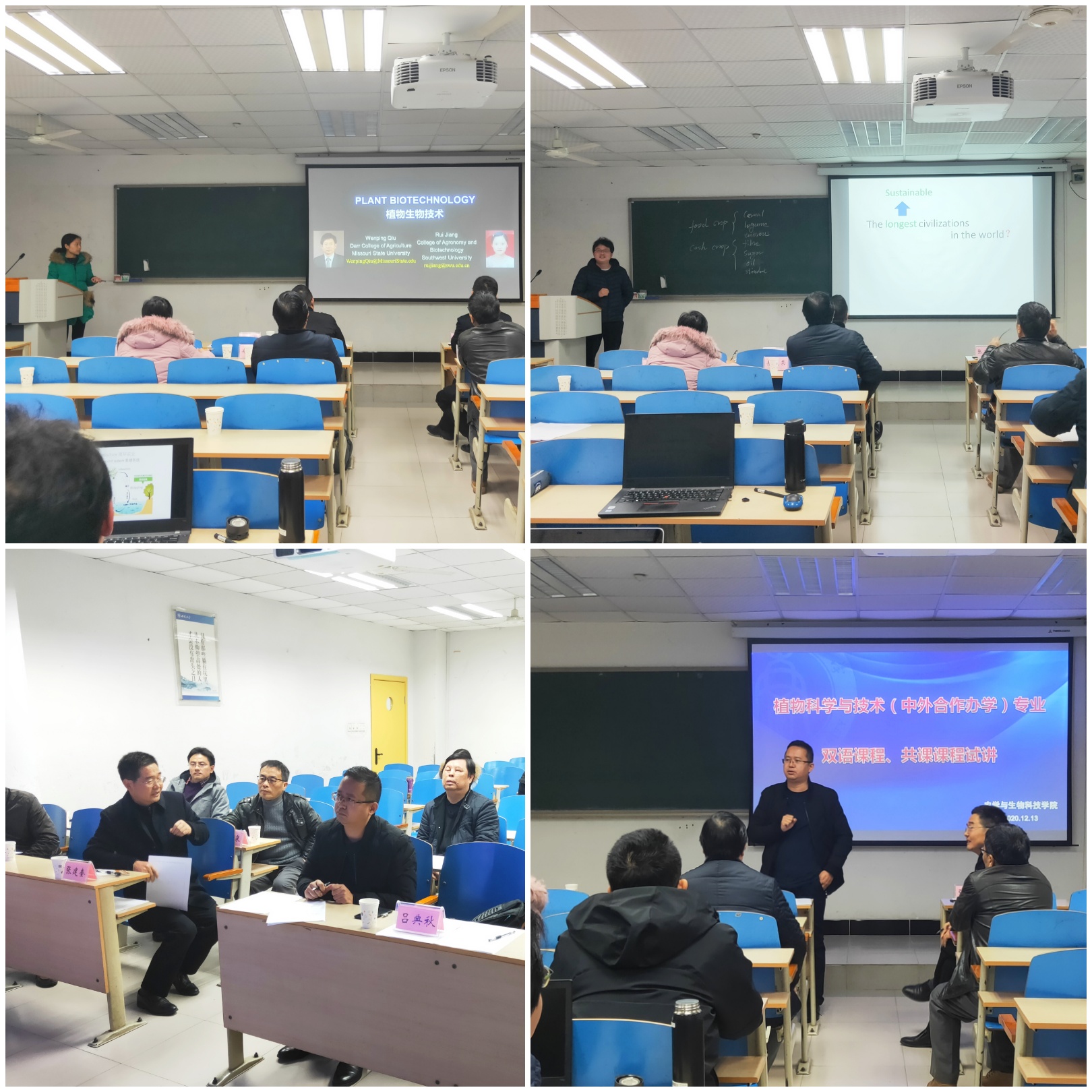 为鼓励教师积极投身双语教学,进一步锤炼教师双语教学基本功,不断提升教学能力和水平,12月13日下午2:30,学院在32教203教室举行植物科学与技术(中外合作办学)专业双语课程、共课课程试讲。院长吕典秋教授出席,学院学术委员会、教学指导委员会部分专家担任评委,中外合作办学办公室、教学工作办公室相关人员参加,由张建奎副院长主持。