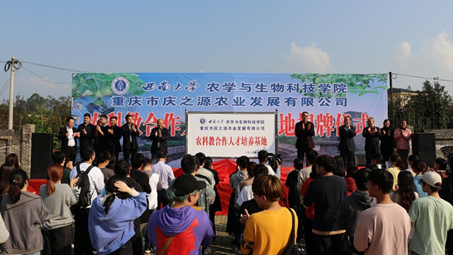 11月8日,学院与重庆市庆之源农业发展有限公司“农科教合作人才培养基地”揭牌仪式在垫江县周嘉镇举行。该基地的建立是为认真贯彻落实习近平总书记给全国涉农高校书记校长、专家代表的回信和新农科建设“三部曲”会议精神,聚焦全面提高农科人才培养能力这个核心点,响应《一楼一凤