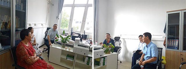 从隆平楼出来后,阳书记和吕院长一行先后来到37教学楼,参观了学院科研共享平台。平台负责人刘志斋介绍平台的功能定位和目前现状后,吕典秋院长详细询问了平台目前纳入学校大型仪器共享网络相关仪器的运行情况后,提出加强日常管理,有效提升仪器使用效率为学院及学校学科建设服好务。