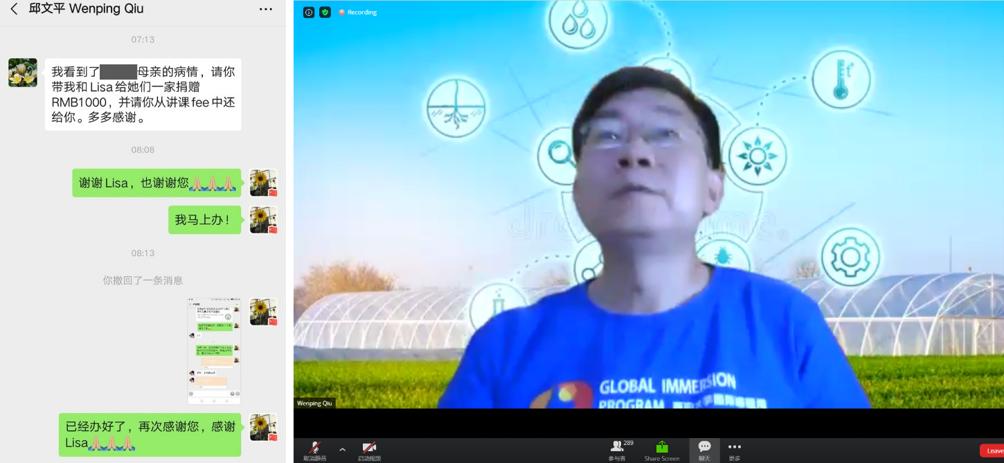 牵头开设的《植物生物技术》课程,邀请到美国密苏里州立大学的邱文平教授授课。