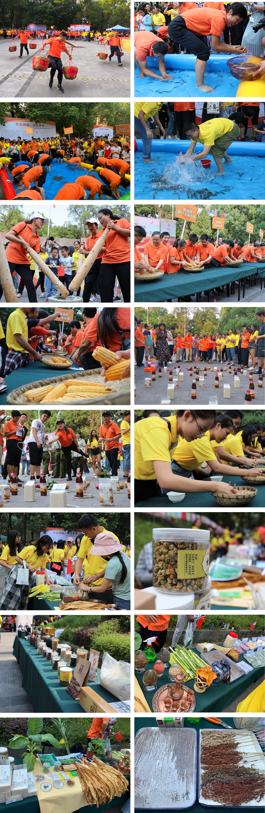 开幕式结束后,举行了农事民俗体验活动和农事竞赛活动,千人打糍粑、“颗粒归仓”挑担子、“浑水摸鱼”捉泥鳅、金玉满堂“剥玉米”、“金珠盈盘”夹黄豆、“硕果累累”套圈圈、游园活动猜谜语等丰富多彩的活动,充分表达丰收的喜悦。平日里严肃庄严、满腹诗书的老师,拥入装满泥鳅的水池,阳光下一次质朴且欢愉的比赛,与池鱼共欢,浪花激荡,哨声逼人,丰收之景,人鱼共欢,场面其乐融融。活动现场还设有农业展览专区,包括“食”和年丰收食品展区和“大有可为”高科技农产品展区,学院各作物课题组提供了高油酸菜油、新品种大米、高粱酒等最新的科研成果、新型品种和转化生产的农副产品,展示一楼一凤