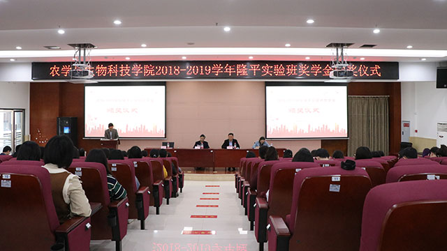 2019年10月17日上午10:40,学院隆平实验班奖学金颁奖仪式在隆平楼204隆重举行。学院党委书记赵子华、院长何光华、党委副书记方凤玲、副院长张建奎、隆平实验(拓展)班班主任卢会翔、张婷出席了颁奖仪式。2016级、2017级、2018级隆平实验班全体成员参加。颁奖仪式由副院长张建奎主持。