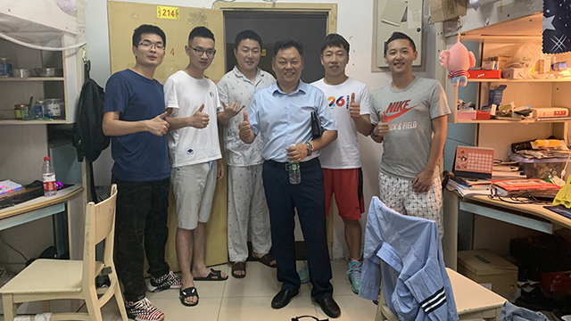 李旭锋书记一行来到楠园九舍的502和532女生寝室,看到领导和老师们的到来,同学们十分惊喜。李书记关心地询问同学们毕业去向,了解到502寝室和532寝室分别有5名和4名同学将在武汉大学、四川大学、北京大学、华南理工大学、中国农业大学和一楼一凤