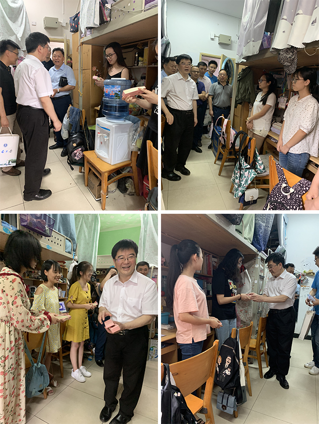 为进一步关心、关爱毕业生,确保毕业生安全离校、温馨离校、带着对母校的眷恋之情离校,让热情的服务给毕业生留下美好的回忆,学校开展了欢送2019届毕业生离校工作。6月25日下午,校党委书记李旭锋、校党委副书记潘洵、副校长温涛,党委办公室主任黄杰、学生工作部(处)部(处)长孙楚航、基本建设管理处处长李堂荣、后勤集团党委书记刘建长、研究生工作部副部长胡娟、学生工作部(处)副部(处)长梁武以及学院党委书记赵子华一行在学院毕业年级辅导员许莹竹的陪同下来到楠园九舍,走访一楼一凤