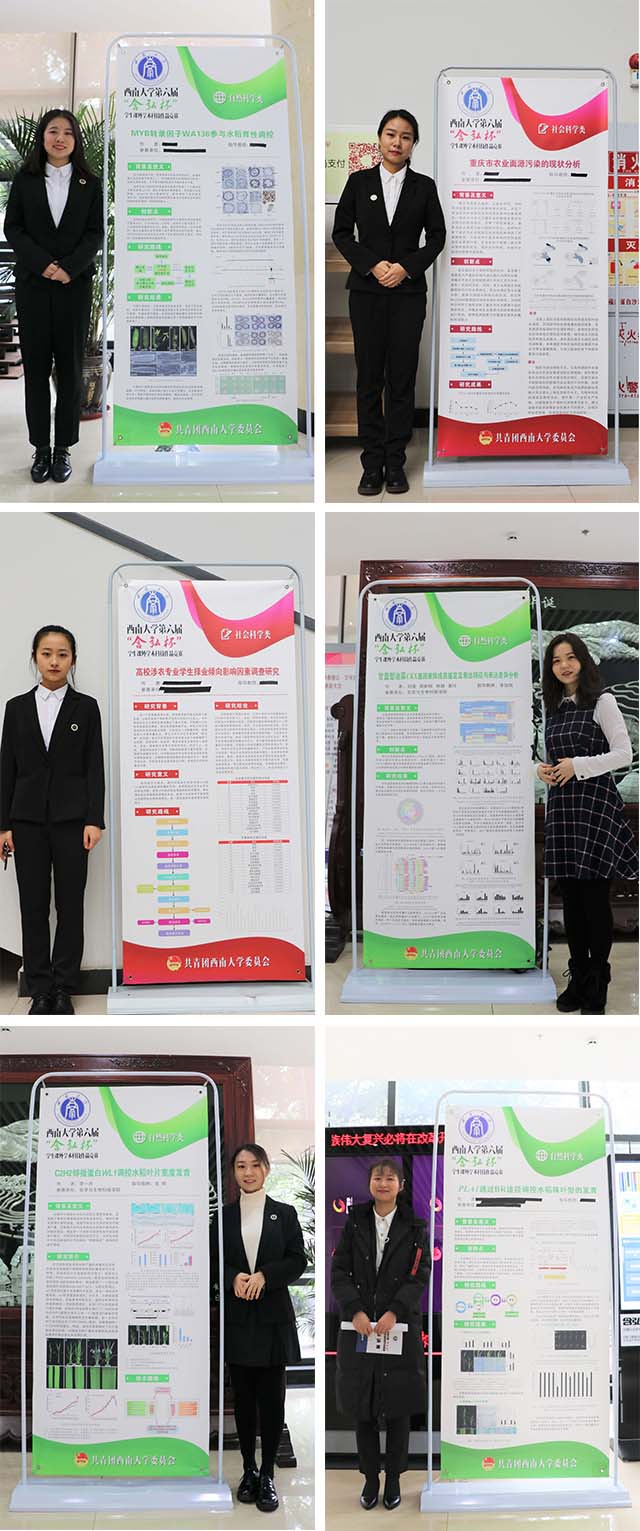 推选的作品中,2015级的刘璞同学的作品《甘蓝型油菜CKX基因家族成员鉴定及表达特征与表达差异分析》获得竞赛的自然科学类作品一等奖,2015级的王玲同学的作品《“MYB转录因子WA136参与水稻育性调控”》获得自然科学类作品二等奖,2016级曹诗琴等同学的作品《安全实用的新型油下汲汤器》荣获科技发明类作品二等奖, 2016级李一丹同学的作品《水稻宽叶基因Wide-Leaf1(WL1)的图位克隆》、2015级熊毓贞同学的作品 《PLA1通过BR途径调控水稻株叶型的发育》、2017级的赵冬铃同学的作品《高校涉农专业学生择业倾向影响因素调查研究》获得三等奖。2015级袁伟同学的作品《重庆市农业面源污染的现状分析》获得了大赛的优秀奖。最终,一楼一凤