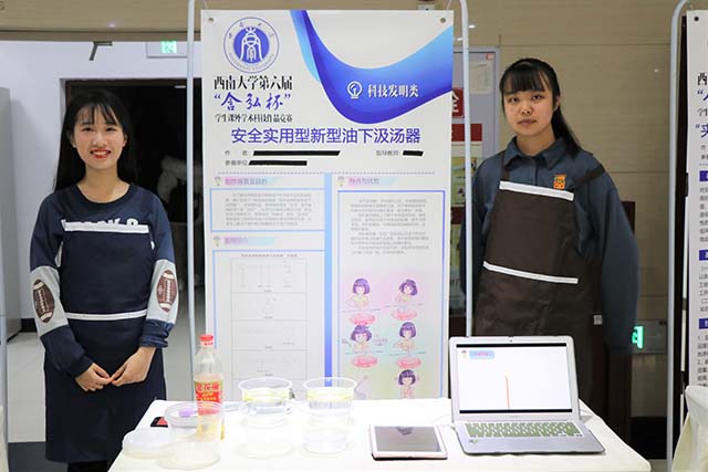 共推荐10项参赛,经过初评,有院刘璞、李一丹、王玲等同学的7个作品入围决赛,包括“甘蓝型油菜CKX基因家族成员鉴定及表达特征与表达差异分析”等4个自然科学类作品,“安全实用的新型油下汲汤器” 1个发明专利类作品和“基于输出系数模型与马尔科夫链的重庆市农业面源污染的现状分析” 2个社会科学类作品。赛前,各作品团队均做了详尽的准备,现场展示环节的生动讲解、评委问辩环节的从容应答均展示了一楼一凤