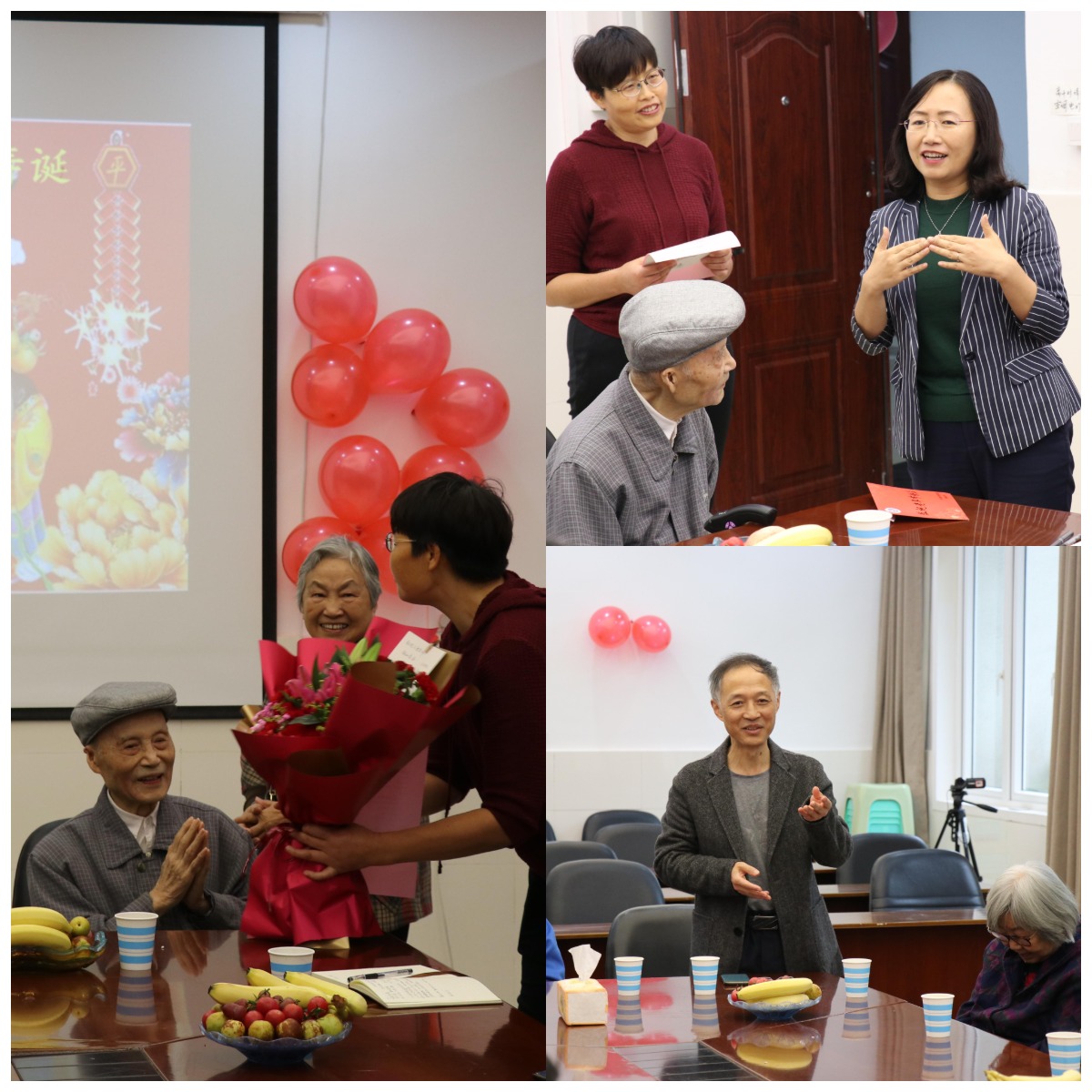 吕典秋院长代表学院送上生日祝福,倪郁老师代表植物科学与技术系感谢老先生为学院发展打下了坚实的基础,恭祝先生身体康健、福寿绵长。