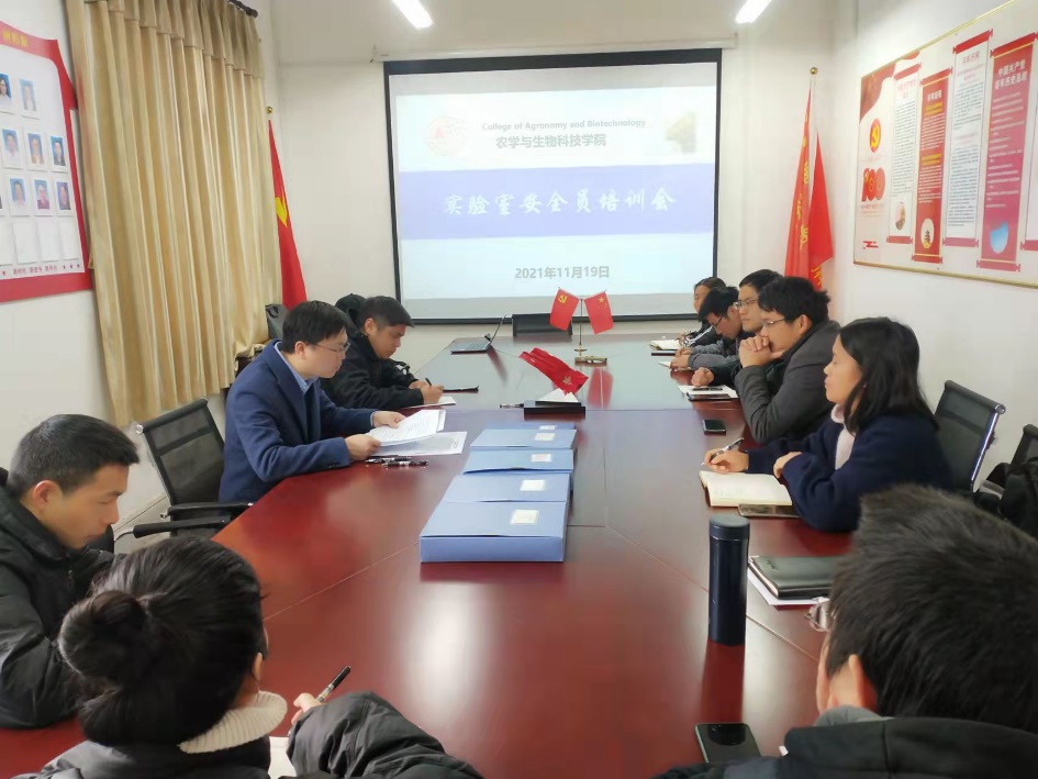 在棉研楼407举行召开了实验室安全隐患专项排查安全员培训会。会议由学院实验室安全分管领导卢坤副院长主持,学院安全员、团队和平台安全员、实验室安全管理科研助理等14人参加了本次培训会。