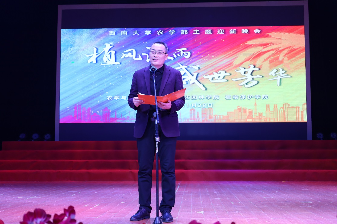 党委书记阳义健、院长吕典秋、党委副书记郑莉佳、副院长张建奎、副院长卢坤,园艺园林学院党委书记李雪梅、党委副书记李小红,植物保护学院党委书记唐荣发等领导和来着三个学院的老师及同学们欢聚一堂,共享视听盛宴,共度美好夜晚。晚会充分展现了一楼一凤