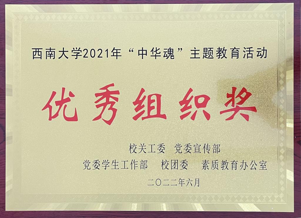 2021年“中华魂”主题教育活动“优秀组织奖”荣誉称号。