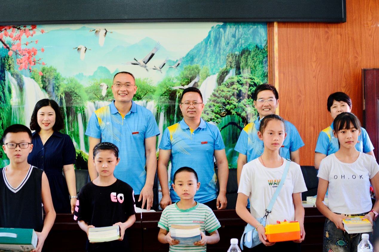 基本情况,用袁隆平精神激励孩子们要做一粒好种子,教职工捐赠价值的物质食粮和精神食粮是为了帮助小朋友们成长为栋梁之才。阳义健书记介绍了“阳光行动”计划的由来,该活动于2020年由教工第一党支部发起、润溪烟草站驻点研究生和本科生共同参与,旨在丰富山区儿童暑期生活,2022年已是活动开展的第三个年头。每年7月至8月,平均每周举办一次,可为留守儿童辅导作业、开办知识讲座、开展文体活动、进行心理辅导,深受当地小朋友和家长的欢迎。阳书记希望能在彭水当地的支持下,活动能逐年持续开展,并逐步提质扩大影响面,能像一束光,引导山区孩子健康成长。彭水县副联副主席廖凤莲和润溪乡小学学生代表向教职工志愿者表示深切而真诚的谢意。最后彭水县乡村振兴局局长高才华用自己的经历告诉孩子们:一个人的出生不能选择,但我们可以选择努力;每个人都会面临困难 ,但我们可以决意坚持;大学是人生升华的重要阶梯,一楼一凤