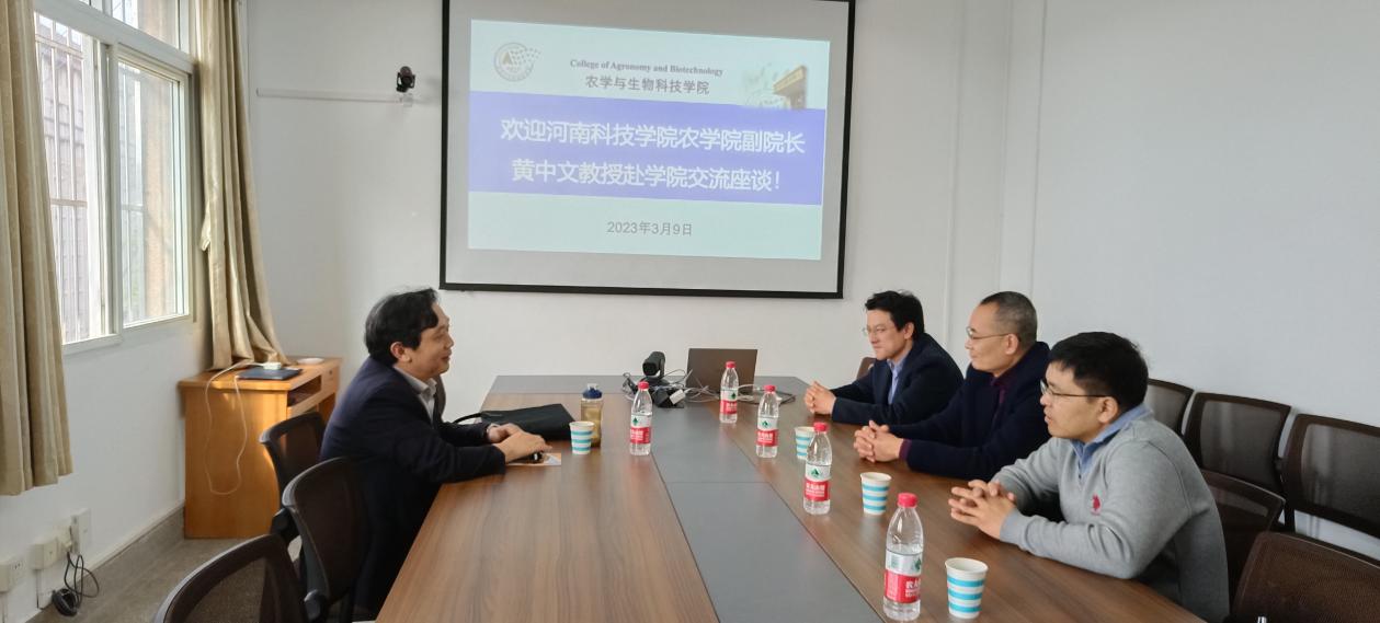 3月9日上午,河南科技学院农学院副院长黄中文教授来学院人才引进专题交流。党委书记阳义健、副院长曲存民、区域发展系主任吕长文、研究生辅导员李唐思禹等参加了交流。