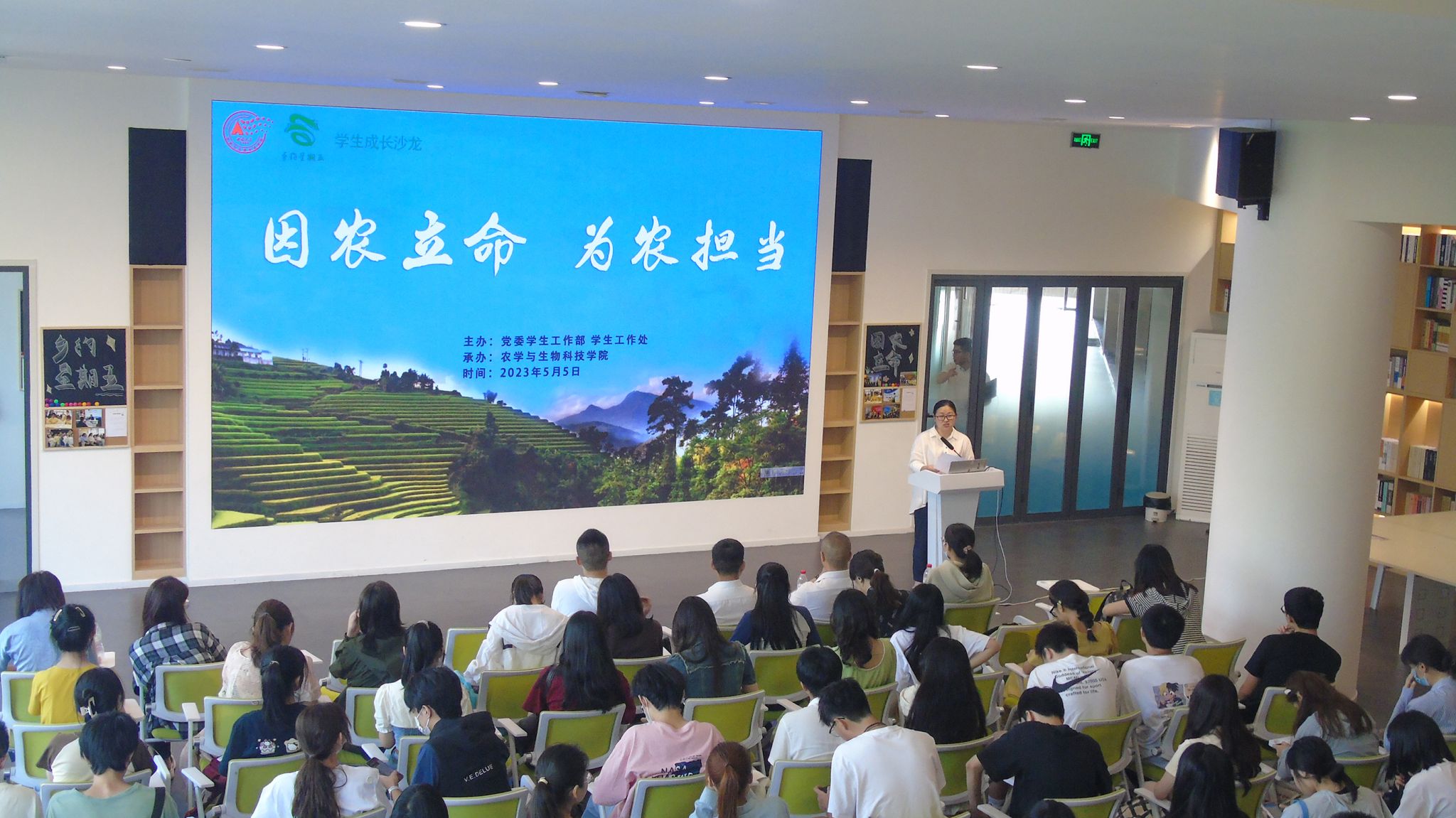 承办的第六期“乡约星期五”学生成长沙龙在青李空间多功能厅A11成功举办。本次沙龙主题为“因农立命,为农担当”,党委学生工作部副部长、学生工作处副处长罗军老师、学生思想政治教育科科长吴姝老师出席,农科专业学生代表参与学习讨论,沙龙由一楼一凤