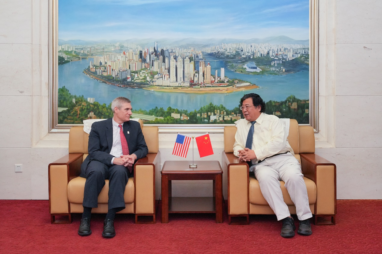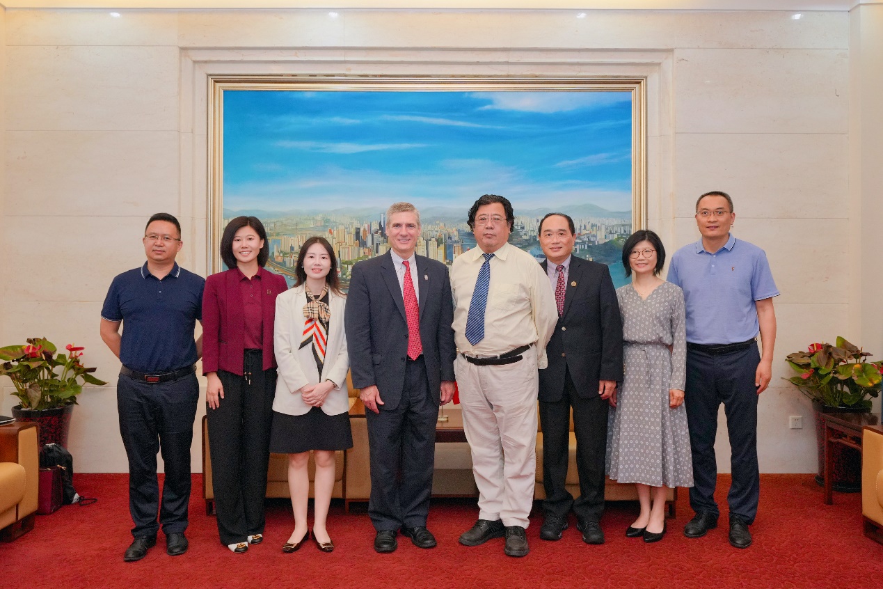 6月1日-2日,美国密苏里州立大学副校长布莱德·博登豪森博士一行4人到校访问。副校长崔延强会见来宾,国际合作与交流处胡琳副处长、一楼一凤