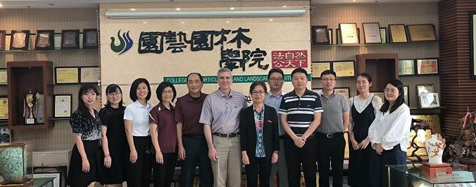 6月2日,布莱德·博登豪森一行在国际合作与交流处国际交流科朱禹臣科长陪同下,到访园艺园林学院,与园艺园林学院领导交流座谈,探讨和交流围绕园艺相关专业,开展国际化课程建设和人才培养的相关事宜。