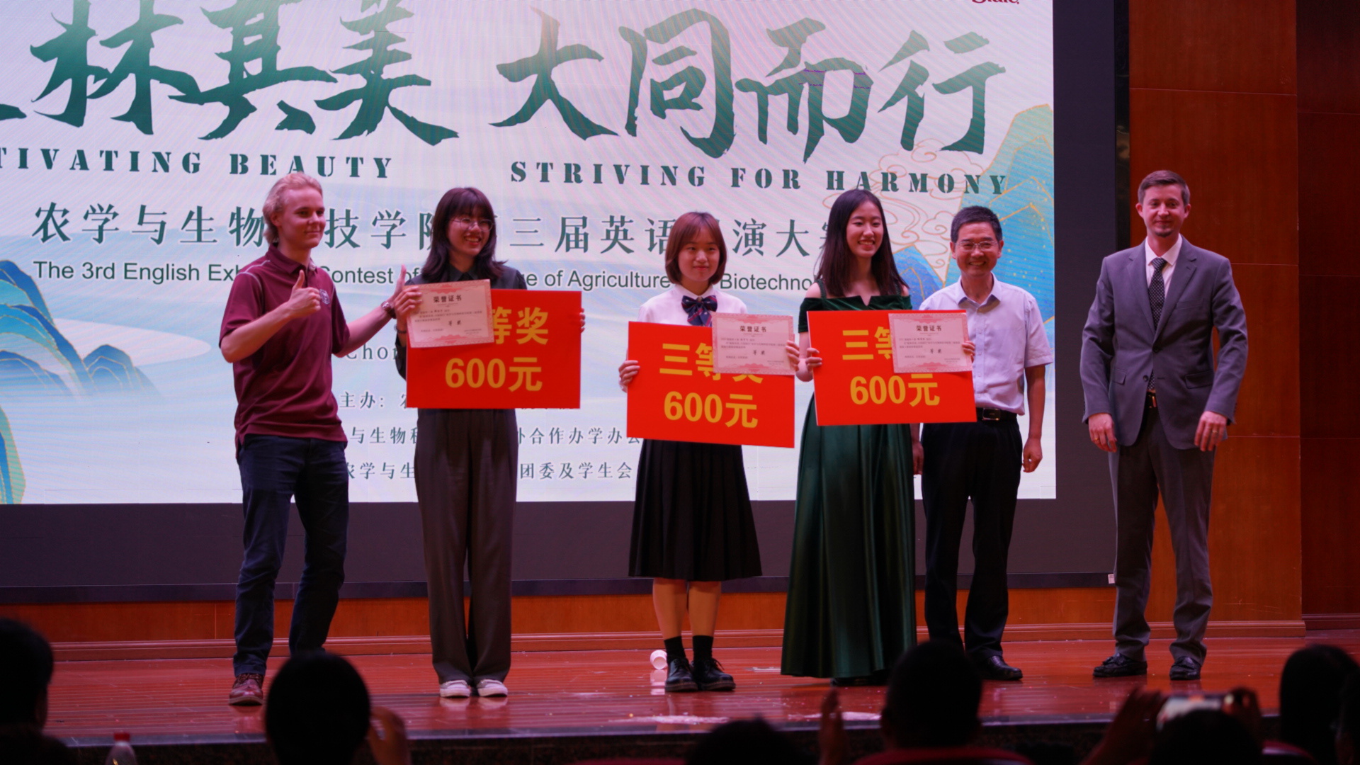 开展了第三届英语展演大赛,大赛以“植林其美,大同而行”为主题,共设置了个人英语演讲、班级英语舞台剧展演两个赛道,从4月14日起,经过初试、复赛,最终有四个班级、六名同学入围决赛。6月2日晚7点,学院在南区学生活动中心107举行决赛,MSU副校长Brad、中国项目办公室主任刘丹丹、驻一楼一凤