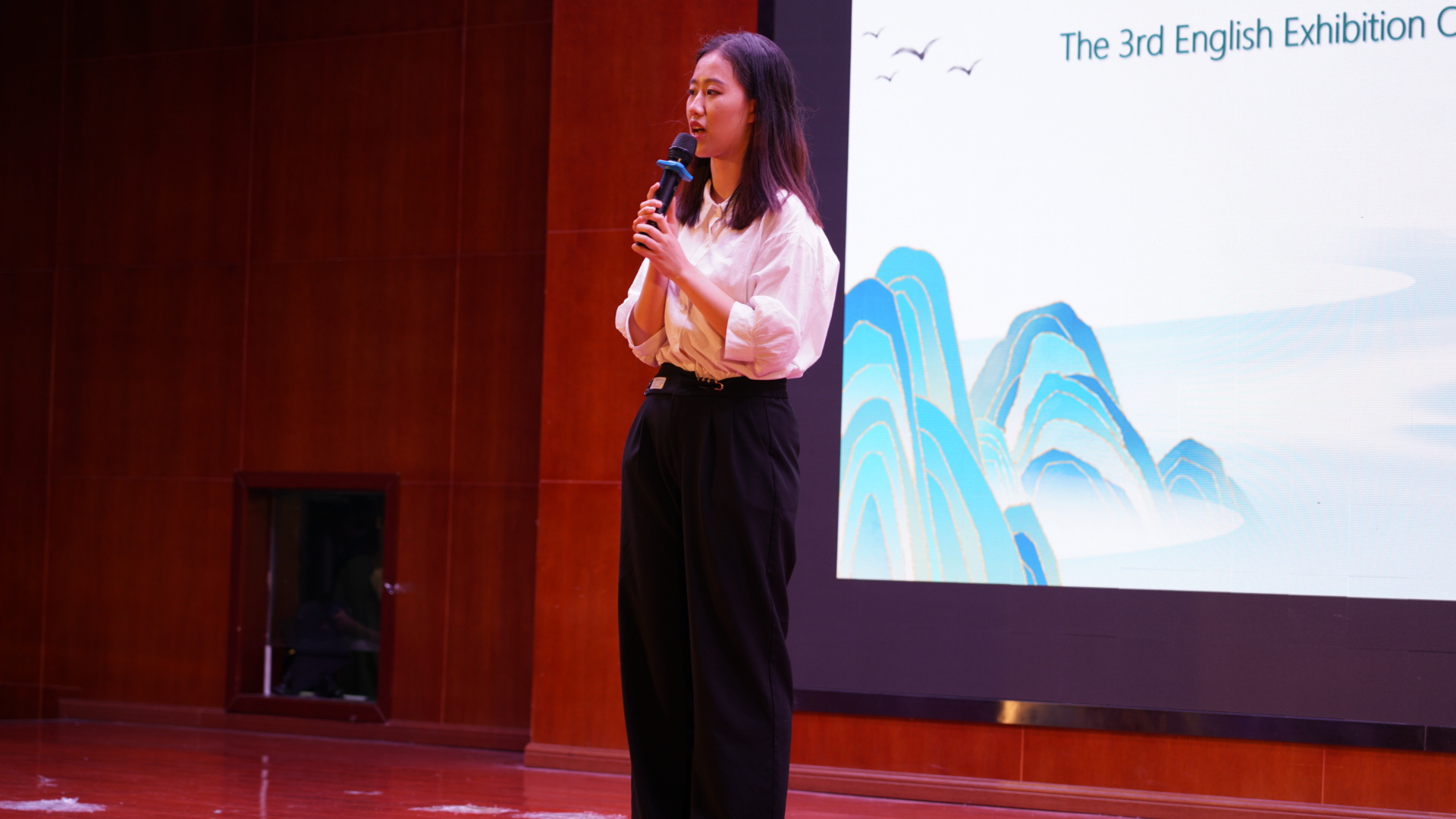个人英语演讲环节,六位选手以流利的英语口语,通过一条三十秒短视频进行引入,并在"我对文明之理解( My interpretation of civilization )、中国声音( Voice of China )、人工智能之功( The Power of Artificial Intelligence )"三个主题中选择切入,发挥自我能力,从容表达自己的观点,体现了学生对当今时代的多元理解和精彩想象。