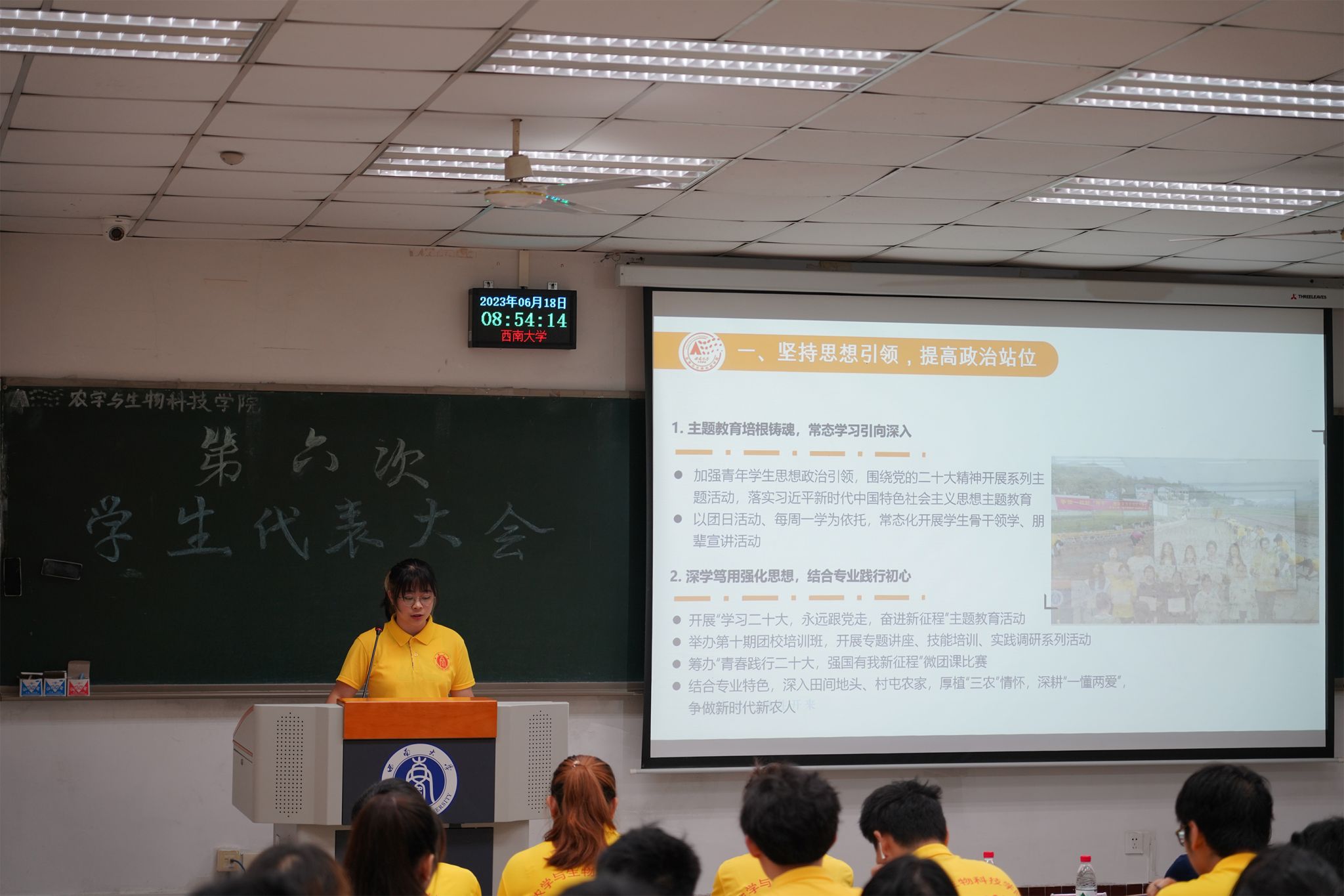 本次大会系统总结了过去一年学生会、研究生会的工作和取得的成绩、分析了存在的问题和短板、规划了未来一段时期的团学工作。大会号召广大学生骨干要怀抱梦想又脚踏实地,敢想敢为又善作善成,立志做有理想、敢担当、能吃苦、肯奋斗的新时代好青年,团结带领全院同学,在加快建设农业强国、推进农业农村现代化的广阔天地中绽放青春之花。