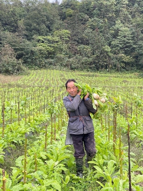同时,戴秀梅老师还在开展烤烟-蔬菜套作模式研究。目前烤烟-大白菜和烤烟-萝卜的套种模式已经有了初步成效,借助山区特殊气候条件,今年打赢蔬菜上市的时间差,农户喜获丰收,预计每亩可实现2000-3000元的增收。
