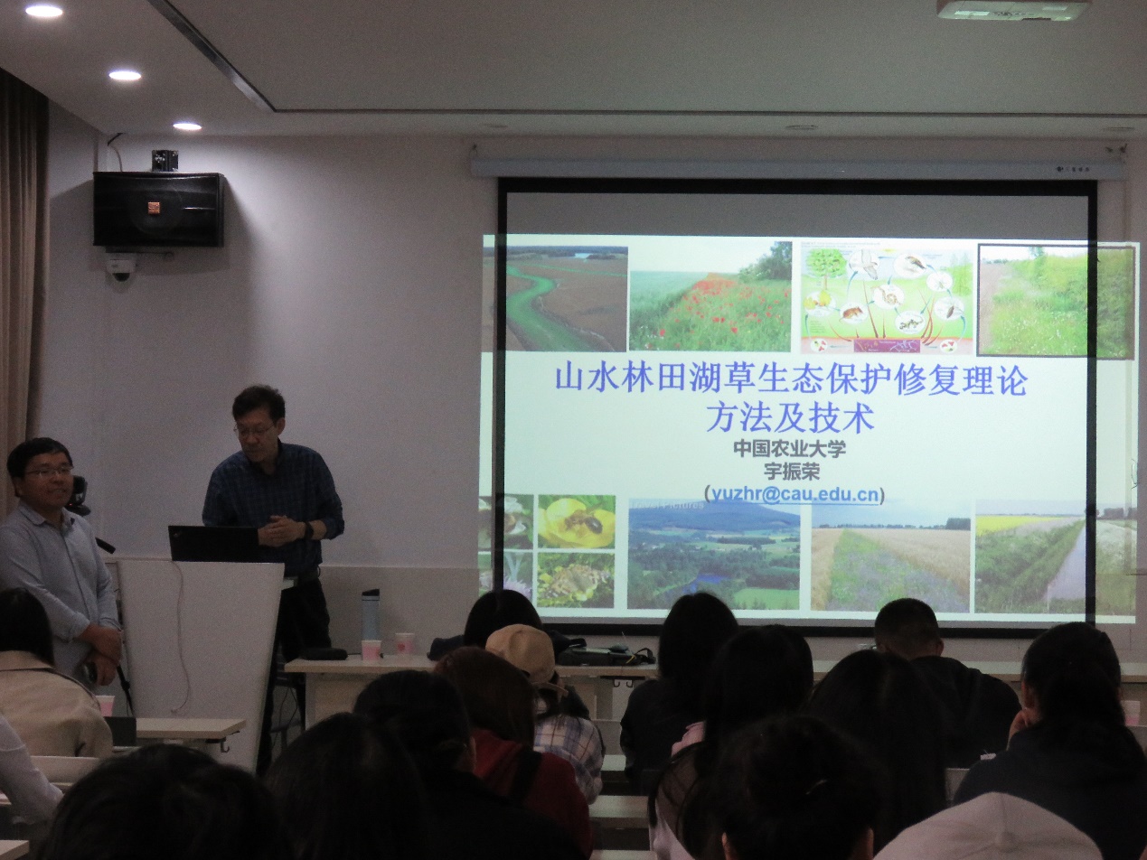 农村区域发展专业方向,基于国土空间规划的概念,讲述了国土空间生态修复的方式,并强调了牢固树立山水林田湖草是生命共同体的概念。宇教授强调我国需要构建参照生态系统,利用农业生态学原理提高生态环境的韧性和弹性,并防止千村一面的情况。为了让同学们理解“基于自然的解决方案”,宇教授举了两个例子,一个是将水泥改成海绵体等渗水砖,一个是将笔直流向的河流更改成曲线流向,这可以减少水流速度,提供更多的生存栖息空间,这也是生态廊道的构建方式,以及种植野花带为害虫天敌提供生态廊道的方式。最后,宇教授鼓励区域专业的同学们,树立一个远大的目标,积极参与其中,拥有了目标就能有更多前进的动力,将生态修复这一概念推广出去,在乡村,保证生态廊道的构建,为传粉昆虫和害虫天敌提供栖息地和食物来源,将每个乡村的独特优势打造出来,成为一个旅游资源,乡村生态价值就可以转换为实际价值。
