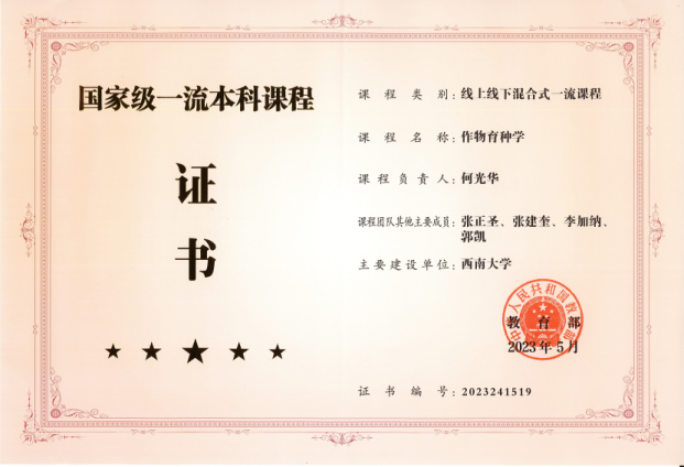 (2023年作物育种学获评国家级线上线下混合式一流课程)