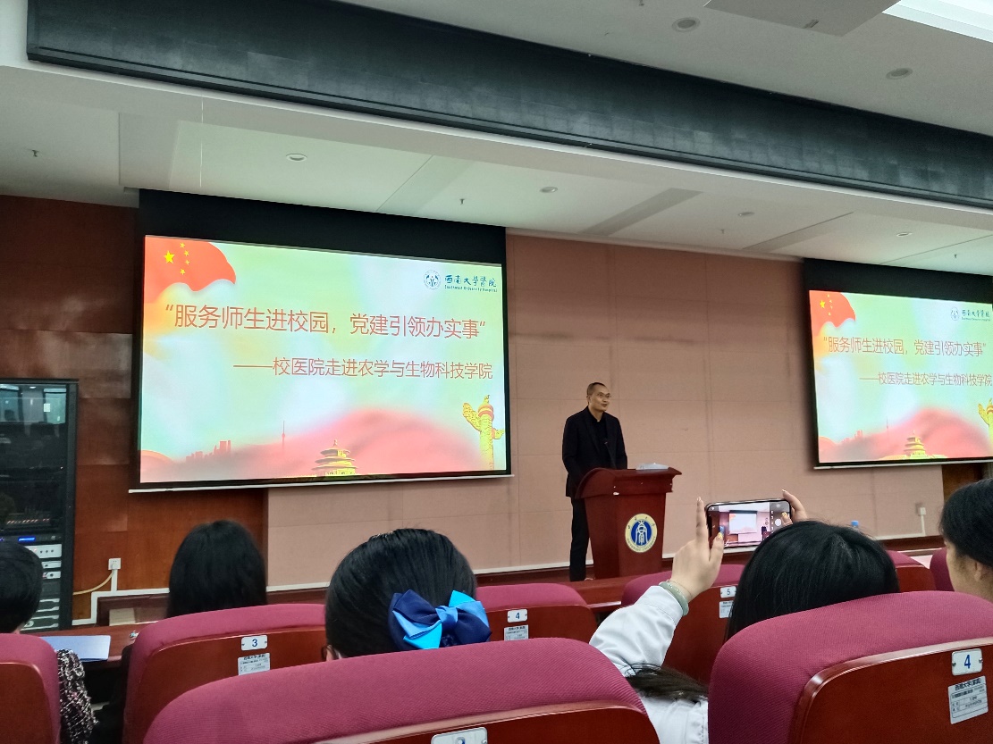 4月7日,学院联合校医院在隆平楼204报告厅举办了“服务师生进校园,党建引领办实事”——校医院走进一楼一凤