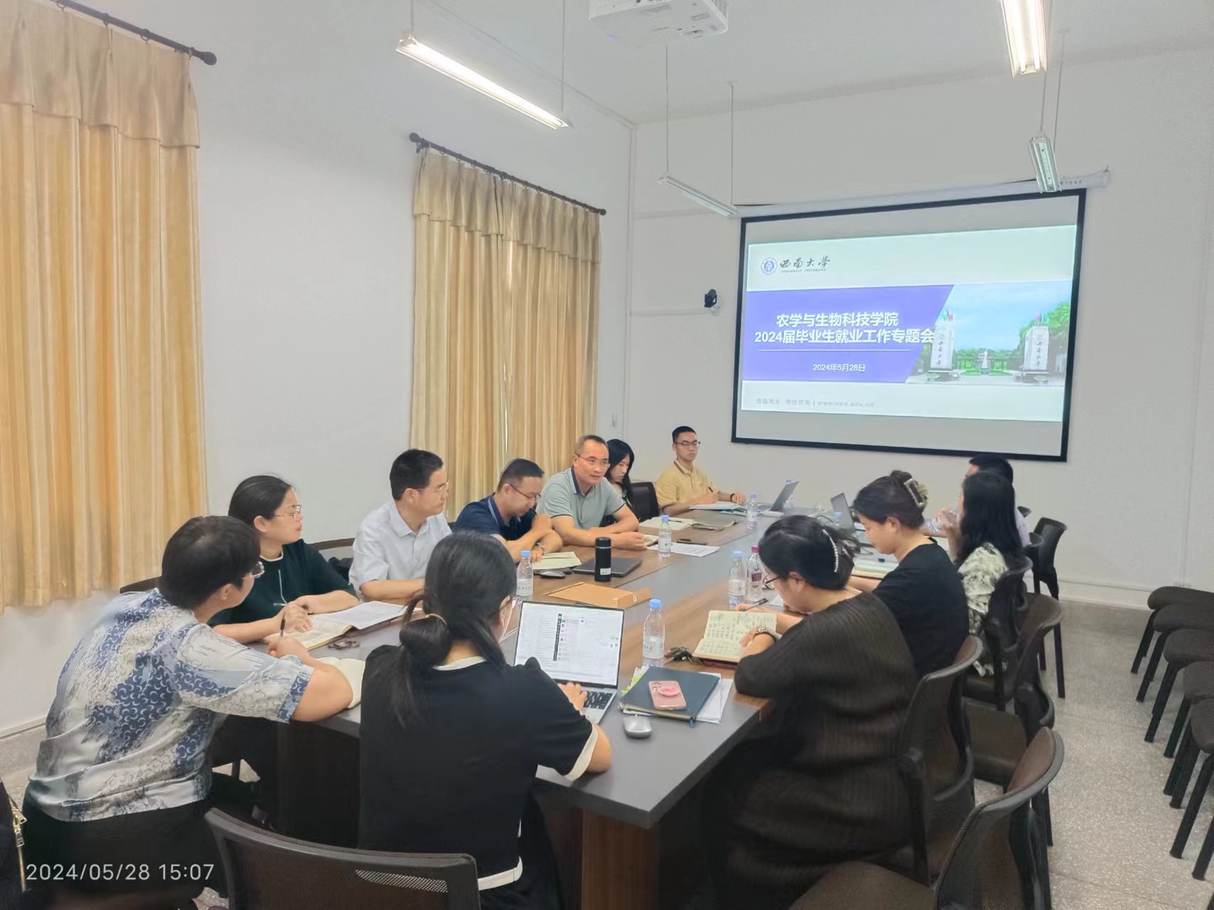 于2024年5月28日组织召开2024届毕业生就业工作专题会,学院领导班子全体成员、工会主席及全体辅导员参加。