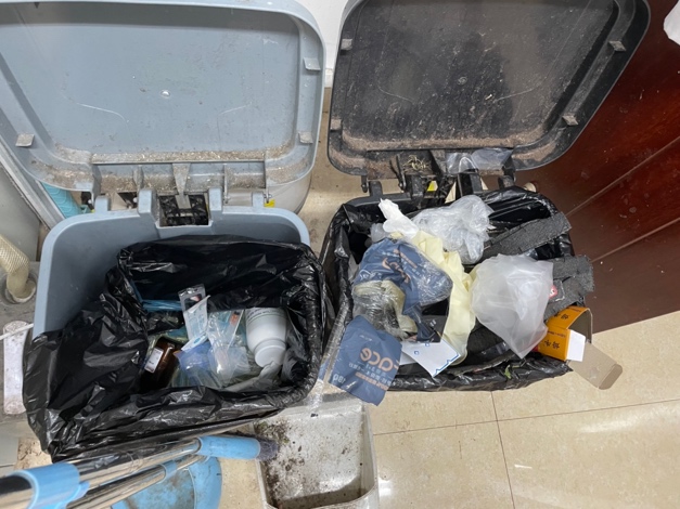 在检查过程中发现,学院实验室安全整体情况良好,但也存在一些隐患,如:1.部分实验室个人防护不到位,包括未穿实验服、穿拖鞋等进入实验室;2.实验室废弃物未规范处置,垃圾未分类;3.实验做完通风橱上危险化学品未及时放回原处;4.试剂标识不清;5.将食物或饮用水带入实验室等。此外,由于天气逐渐炎热,部分实验室通风不畅导致异味较大。