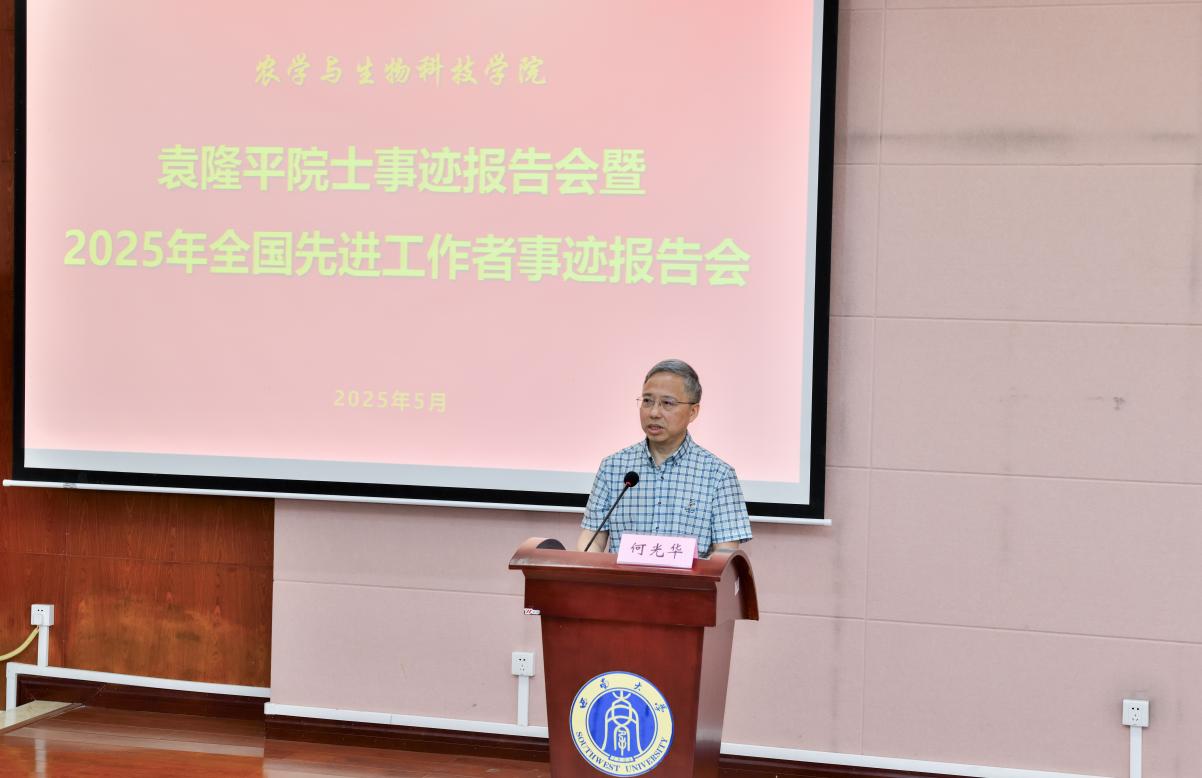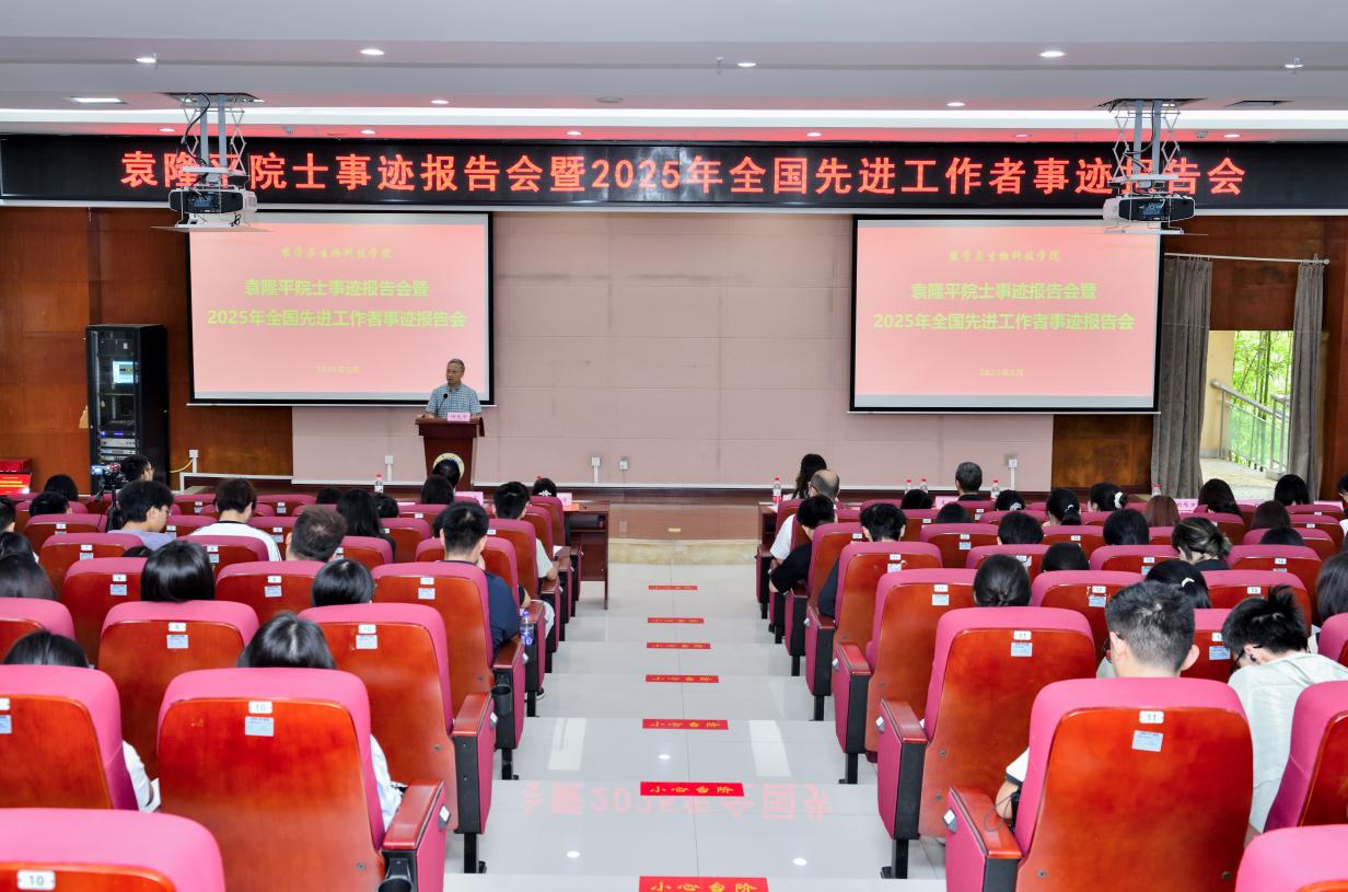 在隆平楼204报告厅举办袁隆平院士事迹报告会暨2025年全国先进工作者事迹报告会。2025年全国先进工作者、学院教师何光华受邀作专题报告,学院部分教师代表,2024级本科生、研究生以及2023级隆平实验班全体同学参加了报告会。报告会由学院党委副书记刘秋艳主持。