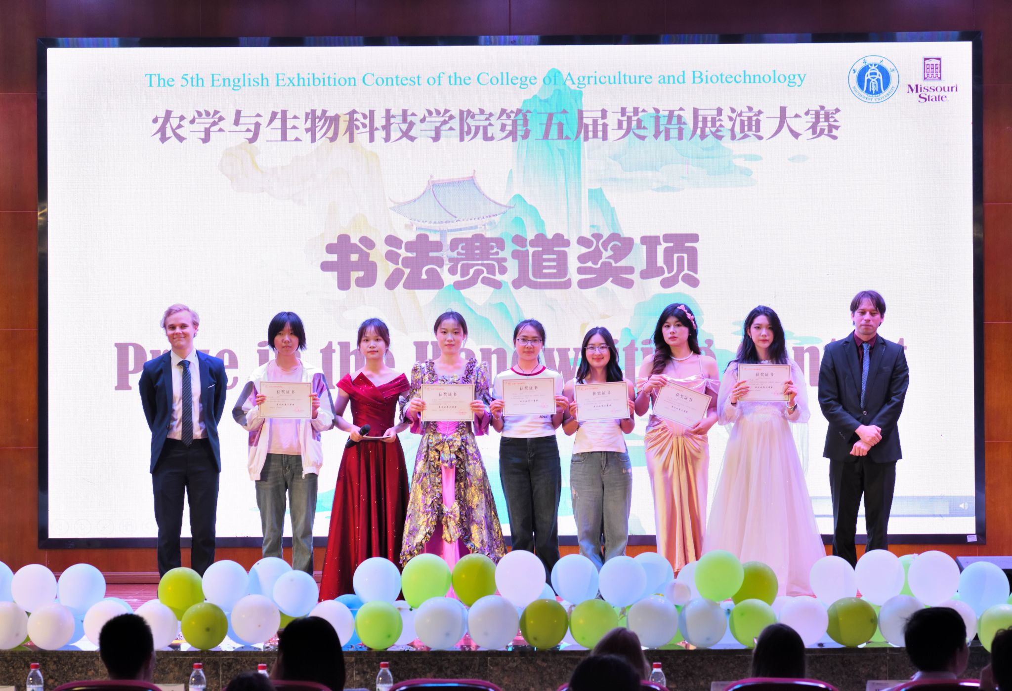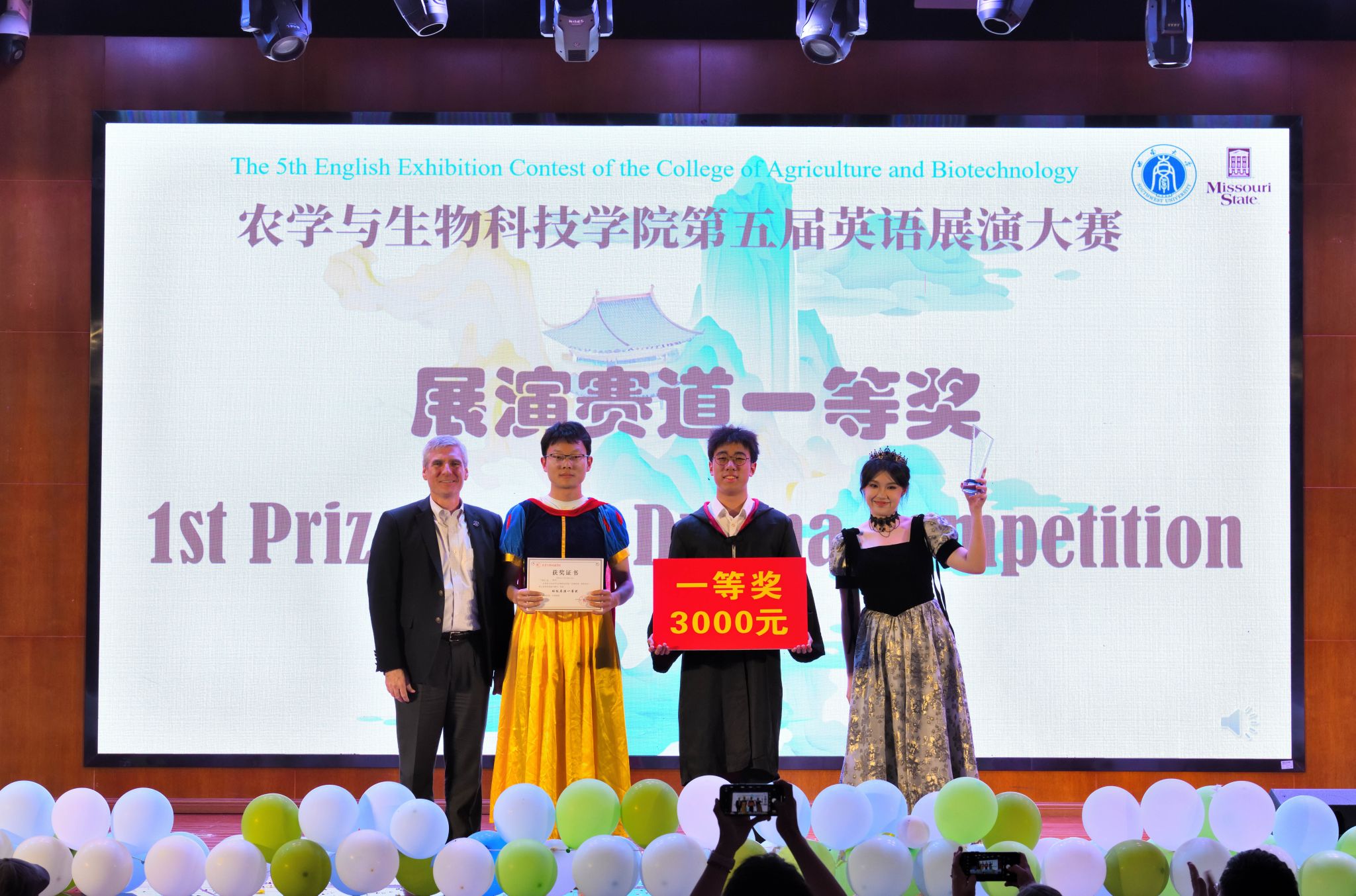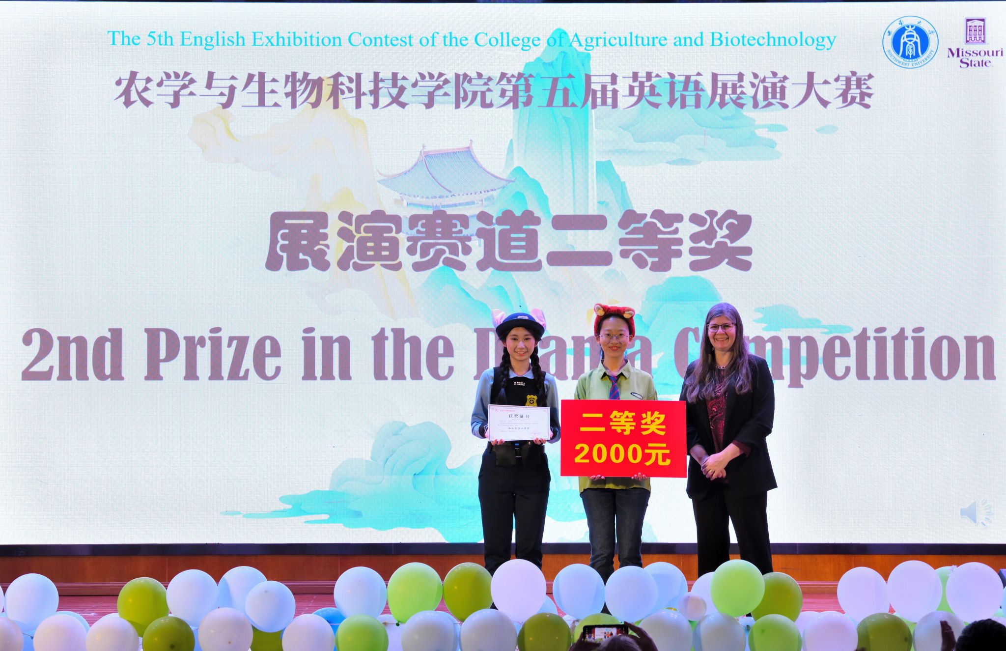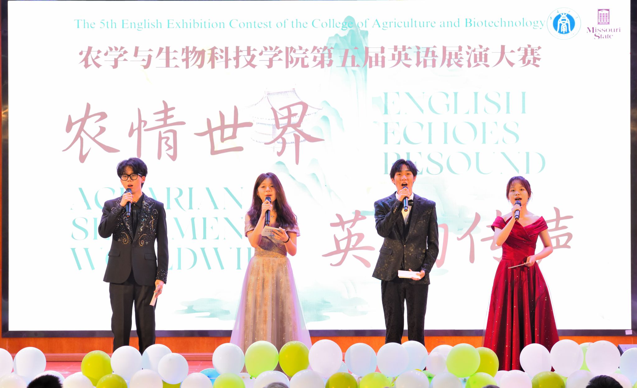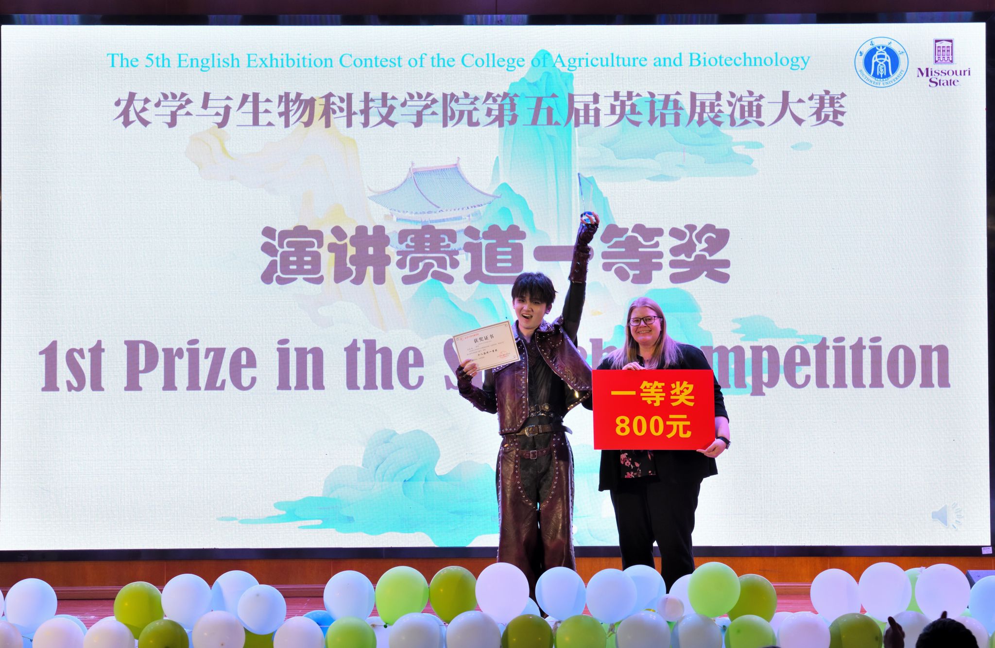 第五届“农情世界,英韵传声”英语展演大赛在南区学生活动中心107圆满落幕。密苏里州立大学副校长Brad Bodenhausen,密苏里州立大学农生院院长Melissa Bledsoe,密苏里州立大学农业科学与保护系系主任Lacy Sukovaty,密苏里州立大学农业科学与保护系讲师Jacob Schneider,密苏里州立大学英语语言中心(ELI)讲师Joshua Conaway,密苏里州立大学中国项目执行主任Dandan Liu,密苏里州立大学杰出教授、葡萄生物技术中心主任Wenping Qiu,一楼一凤