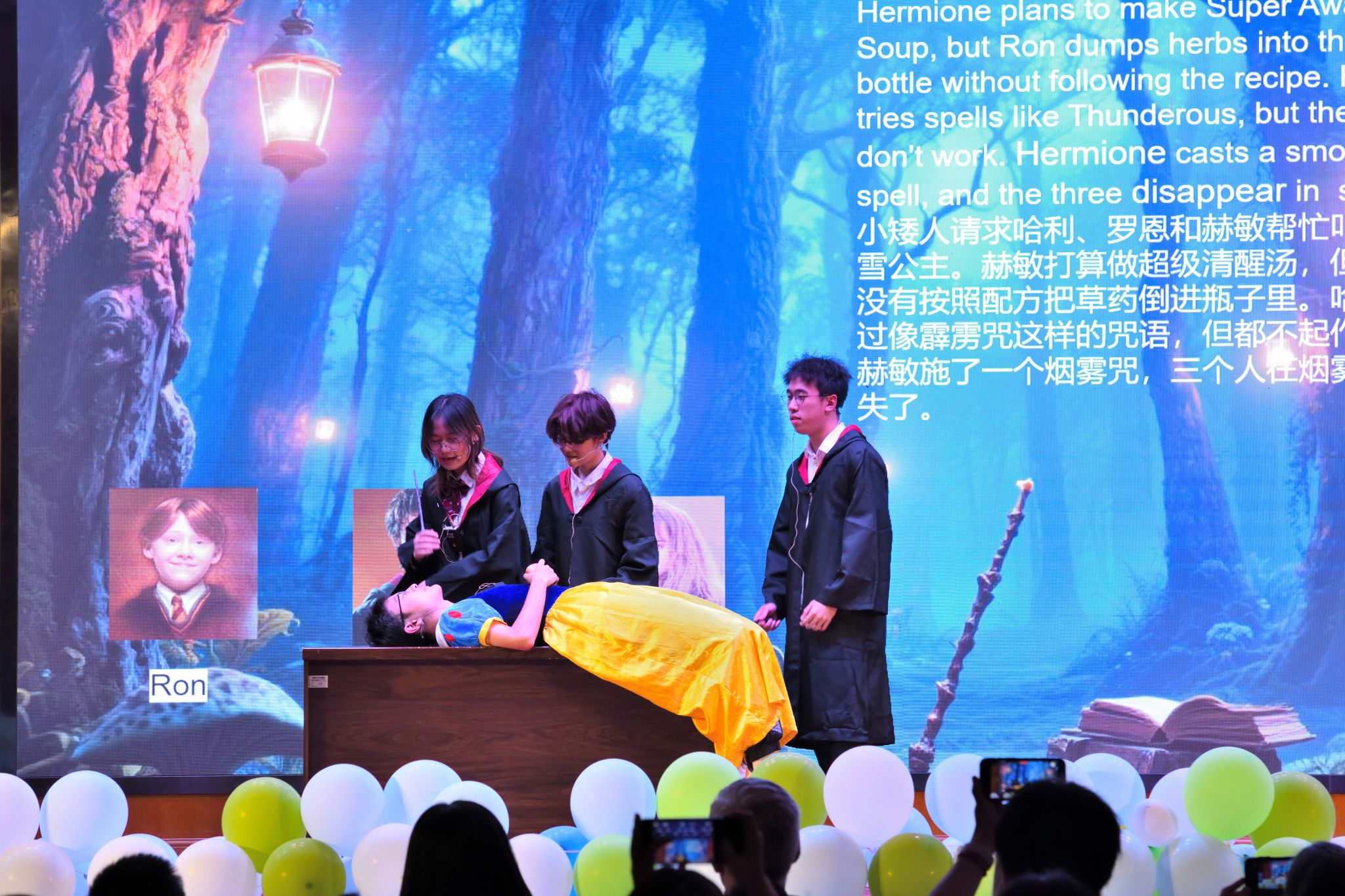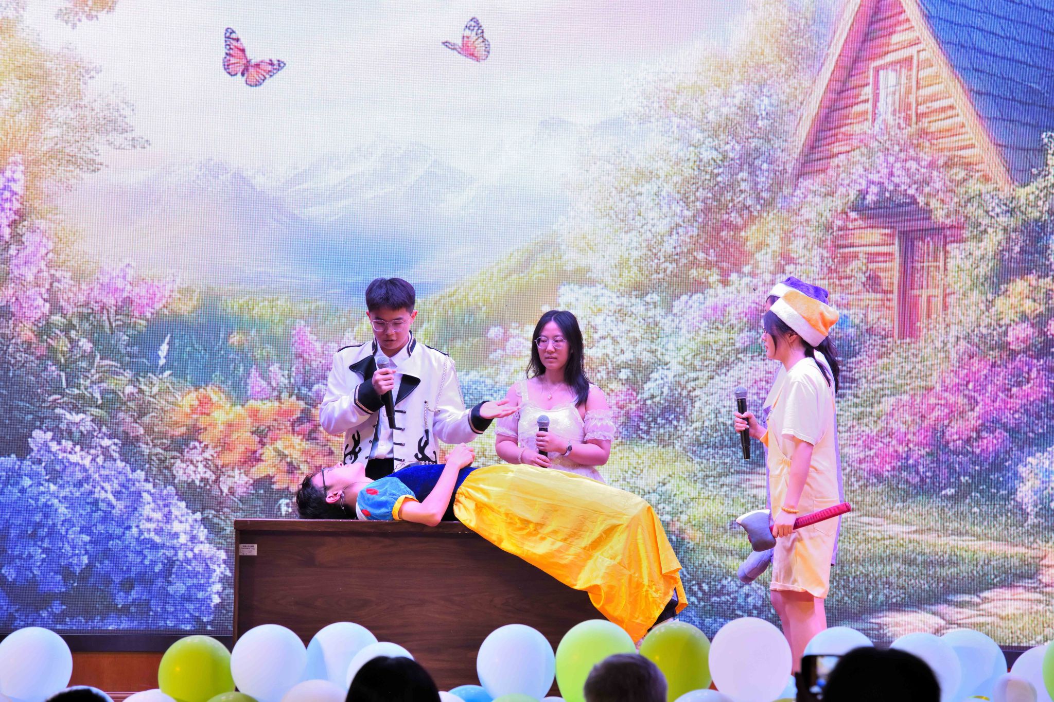2024级植科3班的英语剧《真爱永恒》则采用大胆创新的方式,让佩奇、哈利波特、白雪公主等不同故事主角奇妙相遇,用巧妙改编讲述爱的传奇。