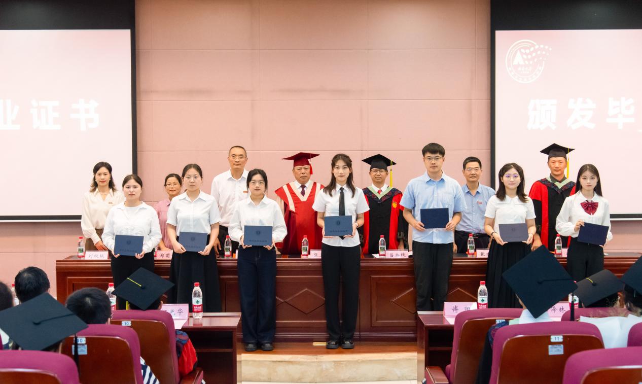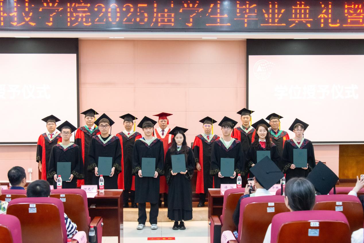 在庄重的学位授予环节,校学位评定委员会副主席张卫国、学院院长吕典秋等学院学术委员会委员为毕业生们一一拨穗授位,毕业生们身着学位服,在师长的见证下完成从“青穗”到“硕实”的蜕变。