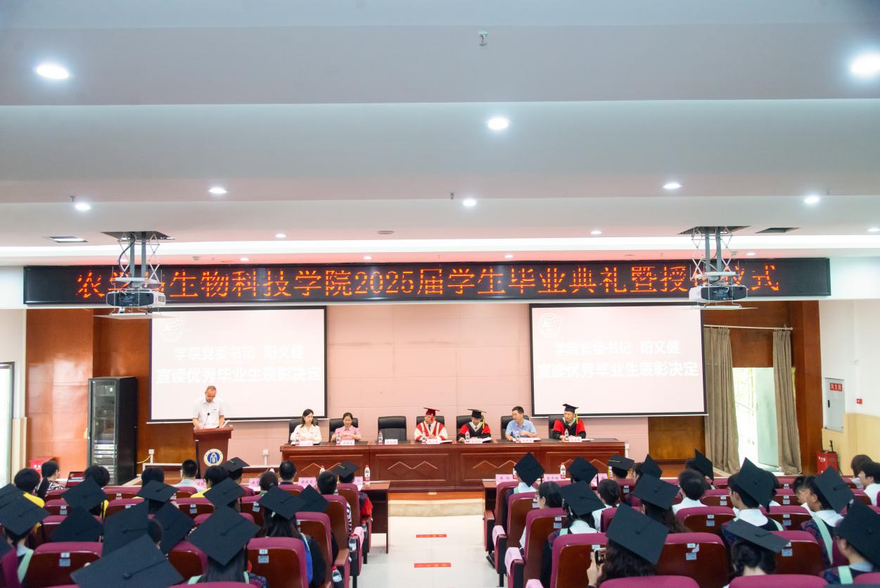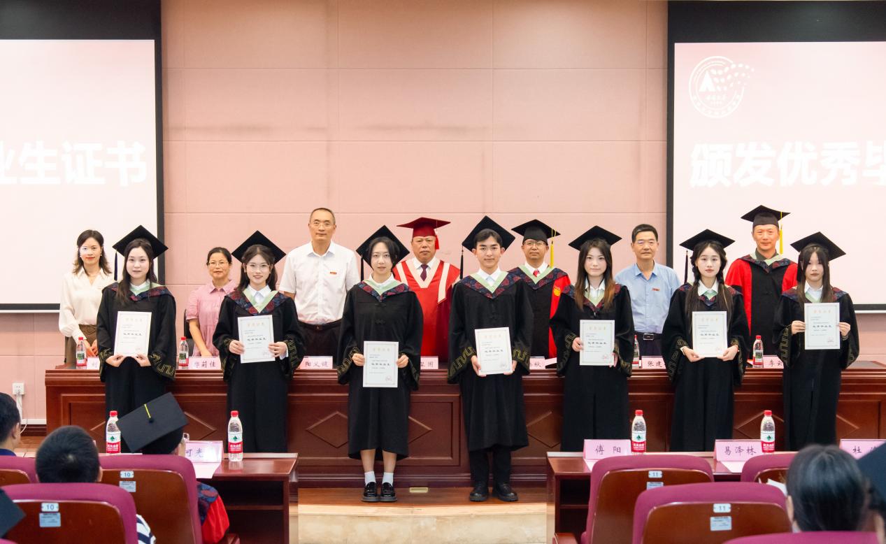 典礼在庄严的国歌声中拉开帷幕,全体师生肃立唱国歌。学院党委书记阳义健首先宣读了2025届优秀毕业生表彰决定,对在学业和科研方面表现优异的33名本科生和26名研究生进行了表彰,并为他们颁发荣誉证书。随后,学院副院长张建奎宣读了毕业决定和学位授予决定,正式确认382名毕业生圆满完成学业。