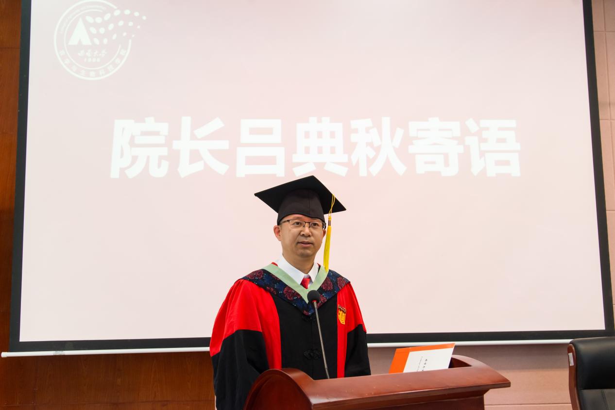 或进入学校博士后工作站。吕院长勉励毕业生们要胸怀“国之大者”,做新时代的追梦人;要有“脚下沾满泥土的”实践精神,做懂农业爱农村的新农人;保持“知足知不足”的智慧,做自己人生的掌舵者。最后,他深情表示:“无论你们走得多远,学院永远是你们的精神家园。”