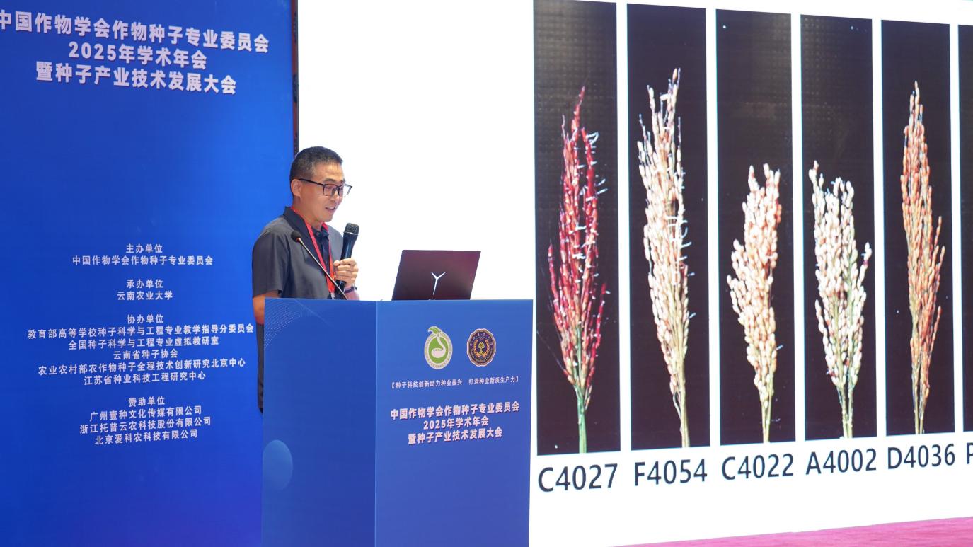 近日,中国作物学会作物种子专业委员会2025年学术年会暨种子产业技术发展大会在云南昆明召开,大会以“种子科技创新,助力种业振兴,打造种业新质生产力”为主题,由中国作物学会作物种子专业委员会主办、云南农业大学承办,设特邀报告、专题报告等环节,聚焦种业核心议题研讨。学院副院长张建奎教授携桑贤春教授、易泽林教授、徐凡副研究员参会,张建奎、徐凡分别作大会报告。