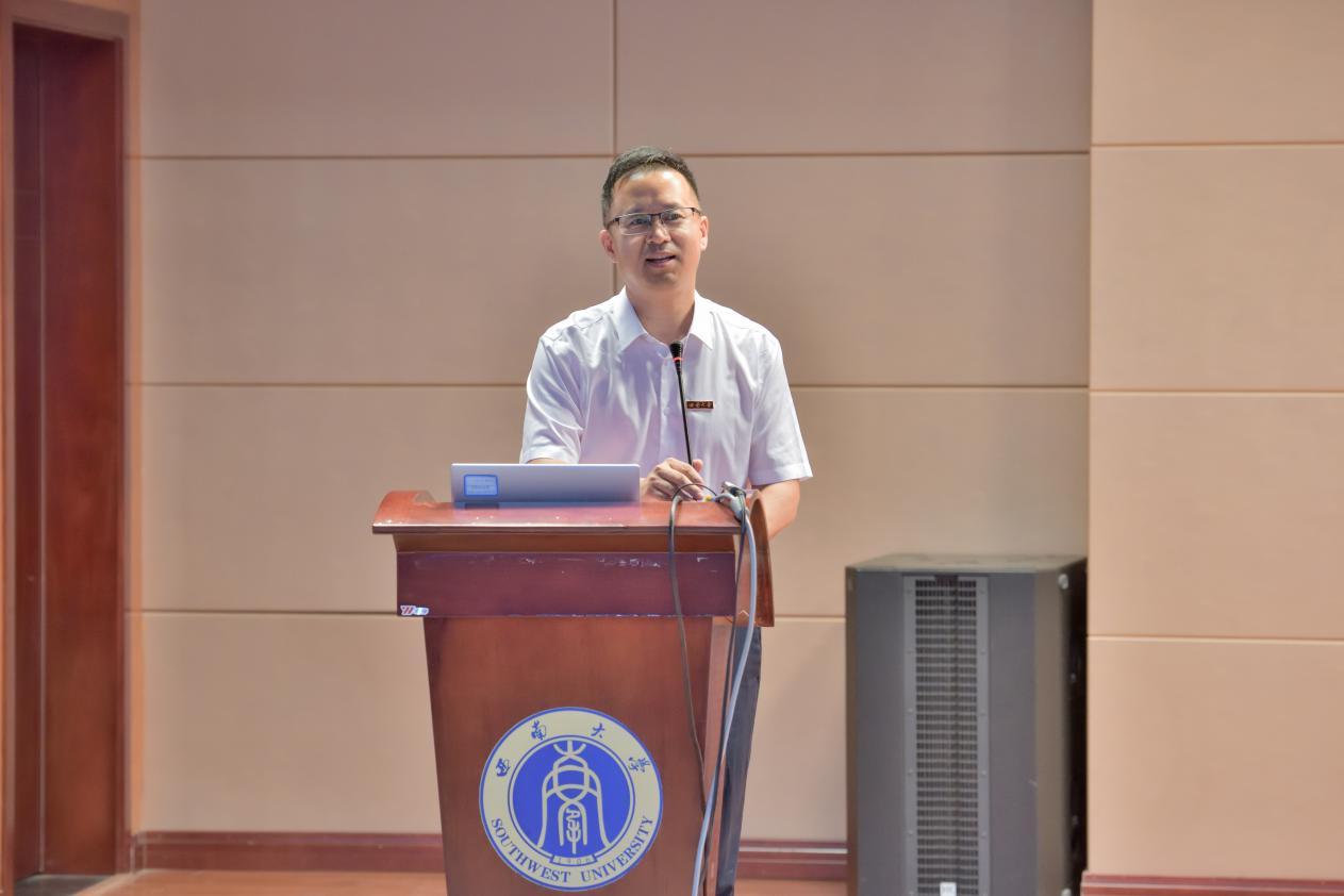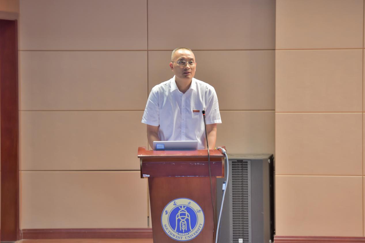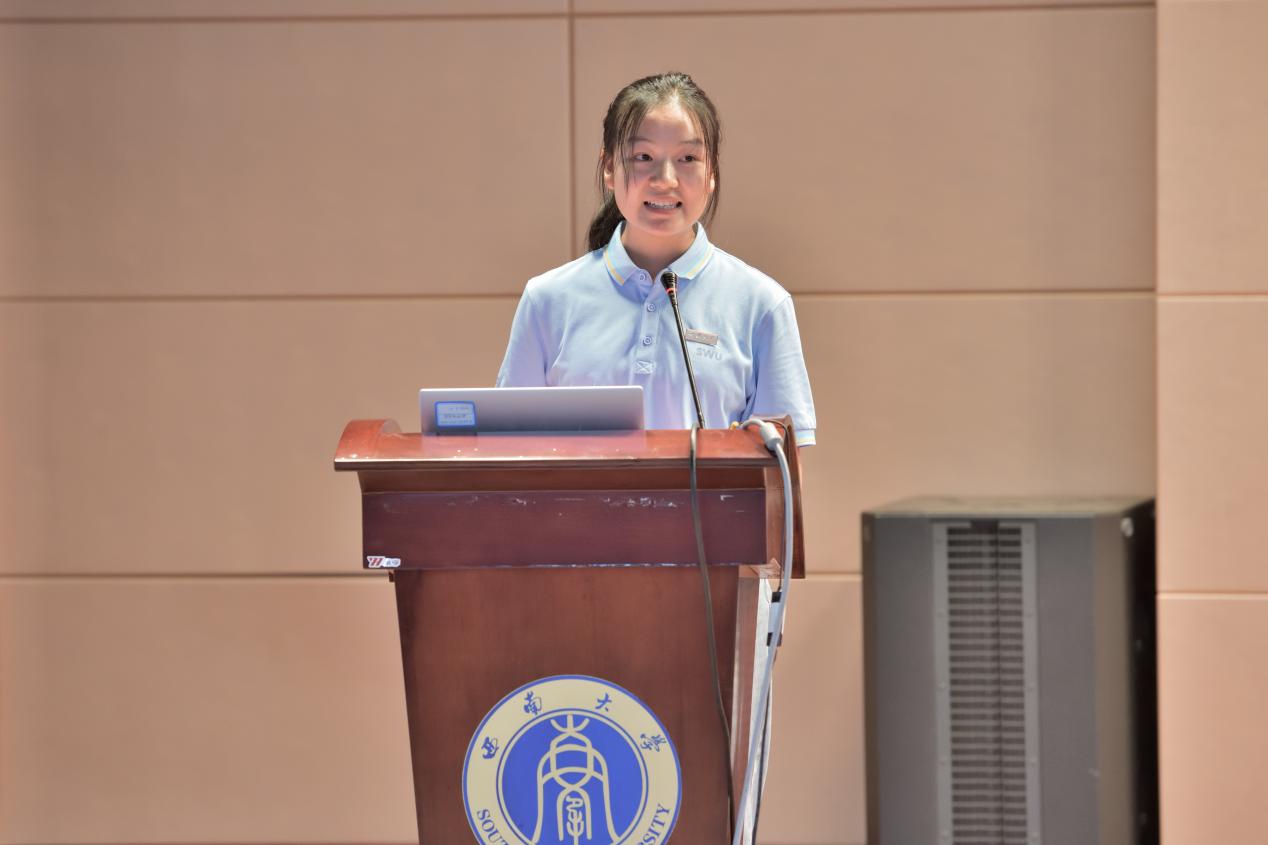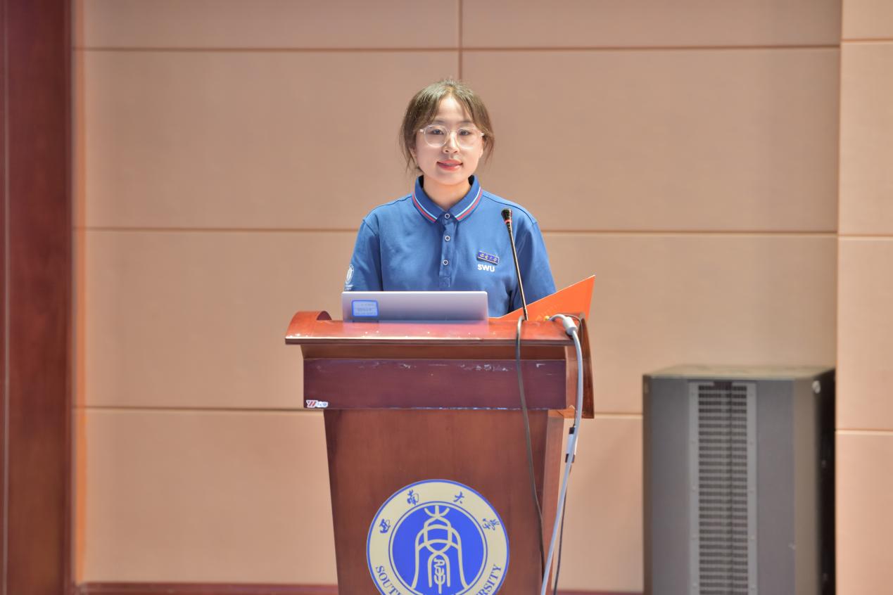 研究生新生代表杨晰同学上台发言,回顾了自己考研一路的不易,并对即将开启的西大之旅充满向往。