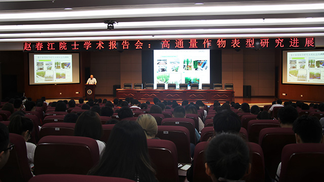 邀请,国家农业信息化工程技术研究中心主任、首席专家赵春江院士来学院做学术报告“高通量作物表型研究进展”。赵院士为听众们开启了一个交叉学科领域的全新视野,400余师生被赵院士的报告深深吸引。