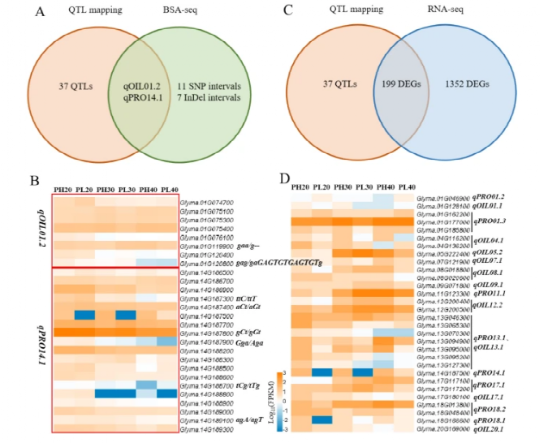 大豆研究所题为QTL mapping and multi-omics identify candidate genes for protein and oil in soybean的研究论文。