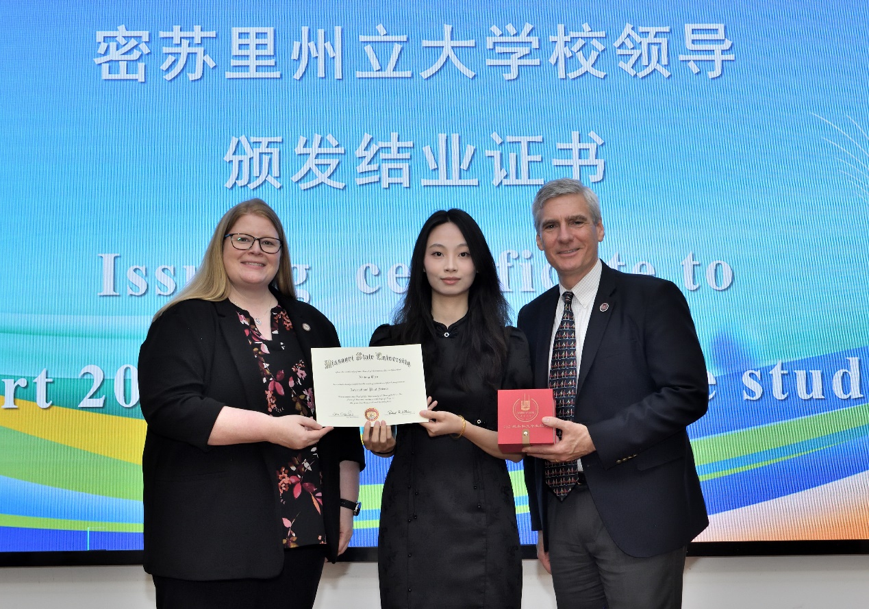 仪式最后,拉德・博登豪森先生与梅丽莎・布莱德索博士为毕业生们颁发MSU课程结业证书与纪念品。