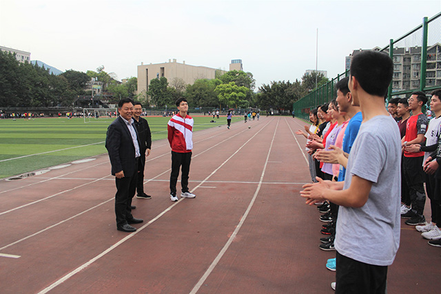 一年一度的田径运动会召开即,学院体训队、跳绳队、广播操队为在今年的运动会上取得优异成绩,延续学院体育优良传统,正紧锣密鼓的开展训练。为探访运动员体训生活,鼓舞运动员士气,2019年4月1日下午5:30,学院领导们到第四运动场看望并慰问备战校运的农生运动员们。学院党委书记赵子华、党委副书记方凤玲、副院长张建奎、副院长唐章林及团委书记许莹竹、辅导员白祯、辅导员吴东倩均来到了四运的训练现场。
