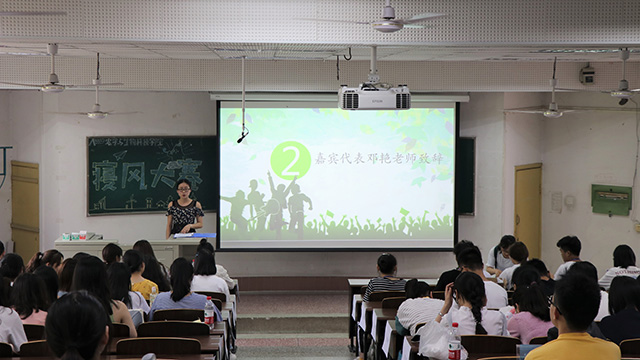 10支参赛队伍向在场的所有人展示了她们各异的寝室风貌。她们既逻辑严密,从“成员介绍、学风建设”等方面向在场人员缓缓铺开画面;也回忆满满,似一本回忆录的温馨讲述,生动而自信,大方而温暖。从PPT中,从发言中,从视频中,我们都能感受到这些寝室的优异和她们如一个家庭般的美好和爱。如一位发言者所说“你深夜归来,发现仍有一盏灯为你亮着,有人仍在等你,你真真正正的会感受到这就是一个家。”更有同学在演讲中悸哭起来,“感谢她们,遇见她们是我一生的幸运”。比赛中的有奖竞猜环节,将整体气氛带上了一个高潮,从这里,让大家更细致地了解寝室,了解他们的家。