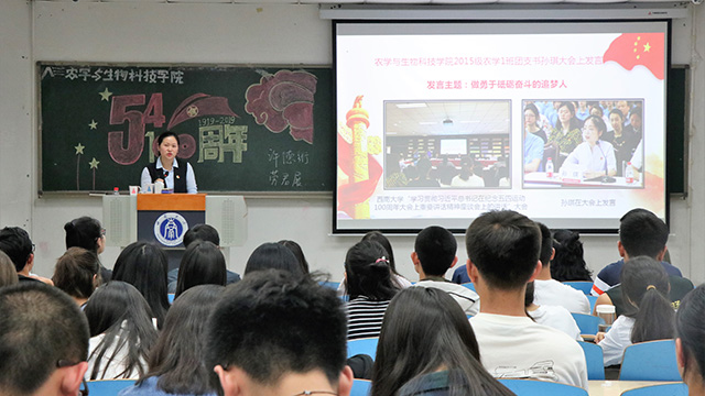 “五四”的火炬,唤起了民族的觉醒。壮丽的事业,激励着我们继往开来。团课活动,不仅仅是为了让我们重温当年爱国先辈们的光辉历程,更要自警自励,提醒自己不断奋发进取。一代人有一代人的长征,一代人有一代人的担当。建成社会主义现代化强国,实现中华民族伟大复兴,是一场接力跑。相信农生学院的青年学子能够担当起时代重任,能够在砥砺奋斗中跑出一个好的成绩,能够在实现伟大复兴的中国梦的生动实践中不断地书写青春华章!
