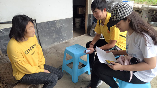 7月16日一大早,小分队便开展了调研。在寻找农户的过程中,队员们发现有许多人来这里避暑。由于地势较高,气候凉爽,木根村的清晨自然成为村民、游客纳凉散步的不二之选。队员们就这个现象进行讨论,并记录入问卷当中。
