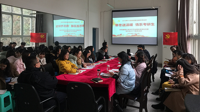 此次慰问活动,有2015级本科生党支部具体承办,也是创新党支部组织生活形式的重要体现,让全体党员践行“全心全意为人民服务”的宗旨,增强学生党员联系群众、服务群众的意识,将解决思想问题和解决实际问题相结合,形成常态化了解学生困难诉求、倾听学生意见建议,健全学生有困难找党支部、有问题找党员的帮扶机制。活动后,党支部继续开展12月份党员组织生活,集体观看《我们一起走过——致敬改革开放40周年》纪录片、2018年《榜样3》专题节目,学习《中国共产党支部工作条例(试行)》,并以“如何规范支部建设、如何激发支部活力”为主题,结合“对标争先”建设深入开展讨论。组织生活中,一楼一凤