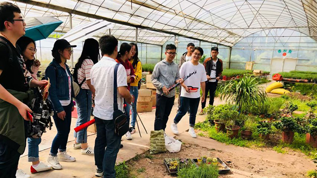 下午同学们来到创业园区参观,工作人员热情的为我们介绍园区的规模和发展状况,并带领我们参观园区内的樱花园、油菜田、水培室、温室大棚等,并耐心给我们讲解温室内的各种作物、花卉,同时也为我们介绍相关种植技术和设施。通过参观学习,同学们深刻认识到现代化的农业园区与传统农业之间的差别,包括品种类型、种植与管理模式、生产与经营理念等。