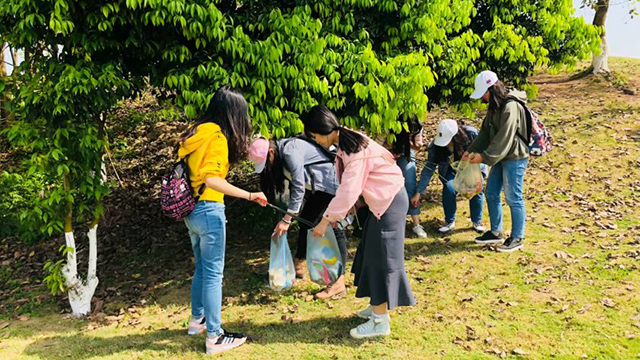 在上午公益志愿活动中,同学们对园区大草坪进行了彻底清理。所有同学被分成三队,一队沿着草坪外边缘清理人行道及绿化带的垃圾,一队沿的草坪内侧边缘清理防护林中的垃圾,剩下的同学组成一队,一字排开,由北面入口向南清理草坪上的垃圾。同学们经过一个多小时的奋战,将园区大草坪彻底清理干净。同学们的公益活动得到了园区工作人员及周围居民的称赞。一位环卫阿姨说:“最近来草坪游玩踏春的人比较多,特别是这两天由于清明节小长假过来的游客更多,留下了不少垃圾,在草坪上很显眼也不好看。你们大学生素质都很高,这个时间过来帮忙给我们减轻了不少工作量。希望人们出行游玩时都能提高环保意识,让大家游玩的环境干净、漂亮些。”