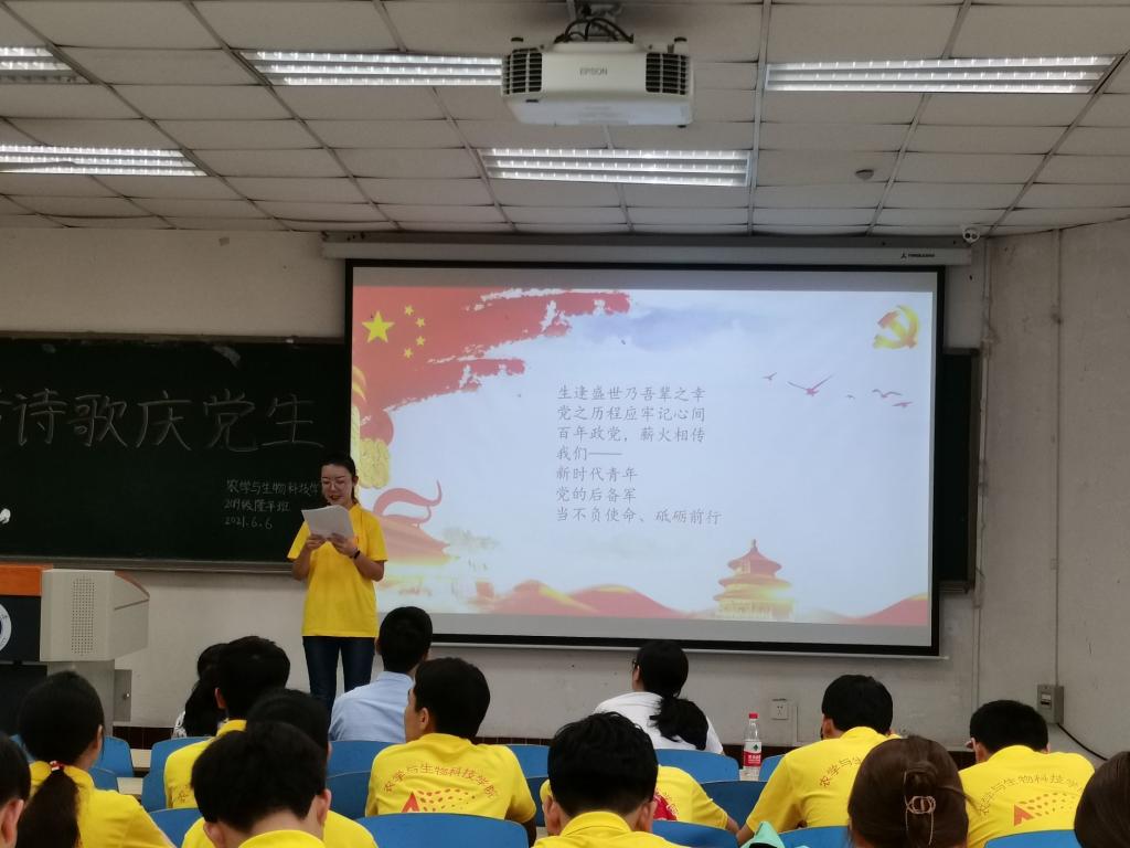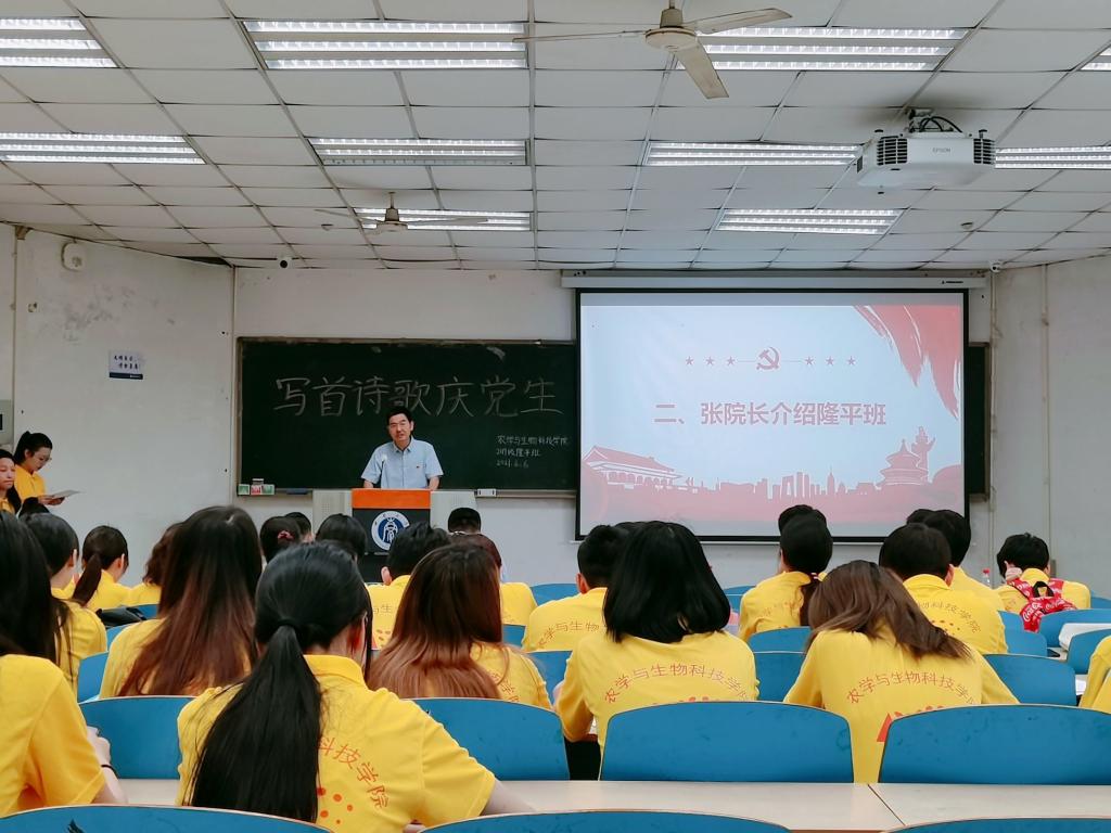 2019级隆平实验拓展班团支部于2019年6月6日上午9点在32教213教室开展了“写首诗歌庆党生”主题原创诗歌朗诵团日活动活动,以青年视角献礼建党百年。一楼一凤