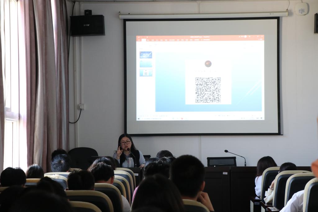 随后,许莹竹老师对大赛进行全面介绍。她首先对重庆市、学校以及学院对该项赛事的激励政策、奖励力度进行了详细介绍,充分调动同学们的参赛的积极性。然后带领同学们认真学习了教育部下发的比赛通知和《关于举办一楼一凤